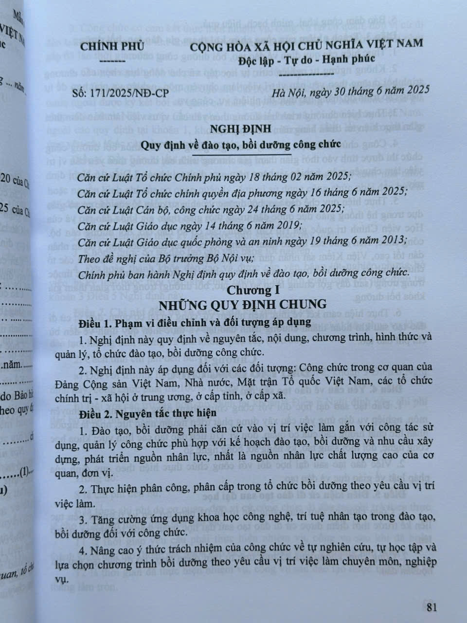 – Nghị định số 171/2025/NĐ-CP ngày 30 tháng 6 năm 2025 của Chính phủ quy định về đào tạo, bồi dưỡng công chức;