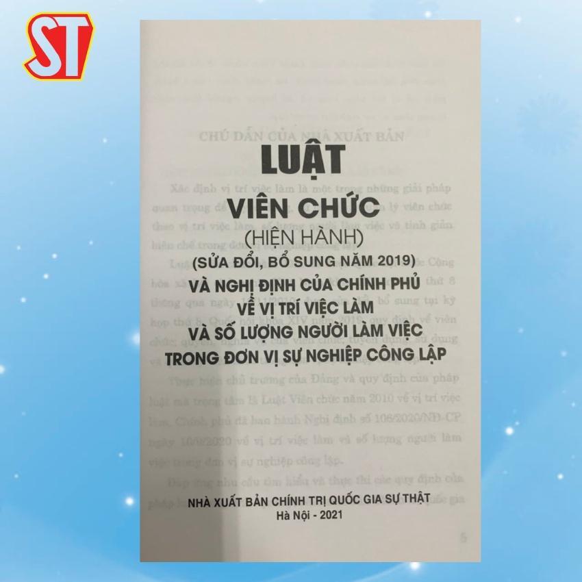 ✨Sách - Luật Viên Chức (Sửa Đổi, Bổ Sung Năm 2019) Và Nghị Định Của Chính Phủ Về Vị Trí Việc Làm Và Số Lượng - NXB Chính Trị Quốc Gia