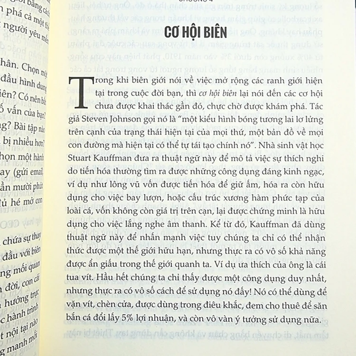Cuốn sách được chia làm bốn phần, mỗi phần tập trung vào một cánh của chữ thập sơ cứu sự bất định, mỗi công cụ nằm trong một chương ngắn đi kèm các bài tập, giúp bạn đối chiếu và thực hành những điều đã đọc. Những công cụ này dành cho tất cả mọi người, từ lãnh đạo tổ chức đến các nhà sáng tạo đang khám phá những lĩnh vực mới, từ các bậc cha mẹ đang cố nuôi dạy con cái đến những người trưởng thành đang cố nuôi dưỡng chính mình. Dù cho bạn ở bất cứ cương vị nào thì những công cụ mà cuốn sách tiết lộ cũng sẽ trở nên rất hữu ích, bởi vào các thời điểm đối mặt với sự bất định, chúng ta thường có xu hướng lẩn tránh hoặc bỏ chạy khỏi những khả năng lẽ ra nên theo đuổi hoặc đón nhận.