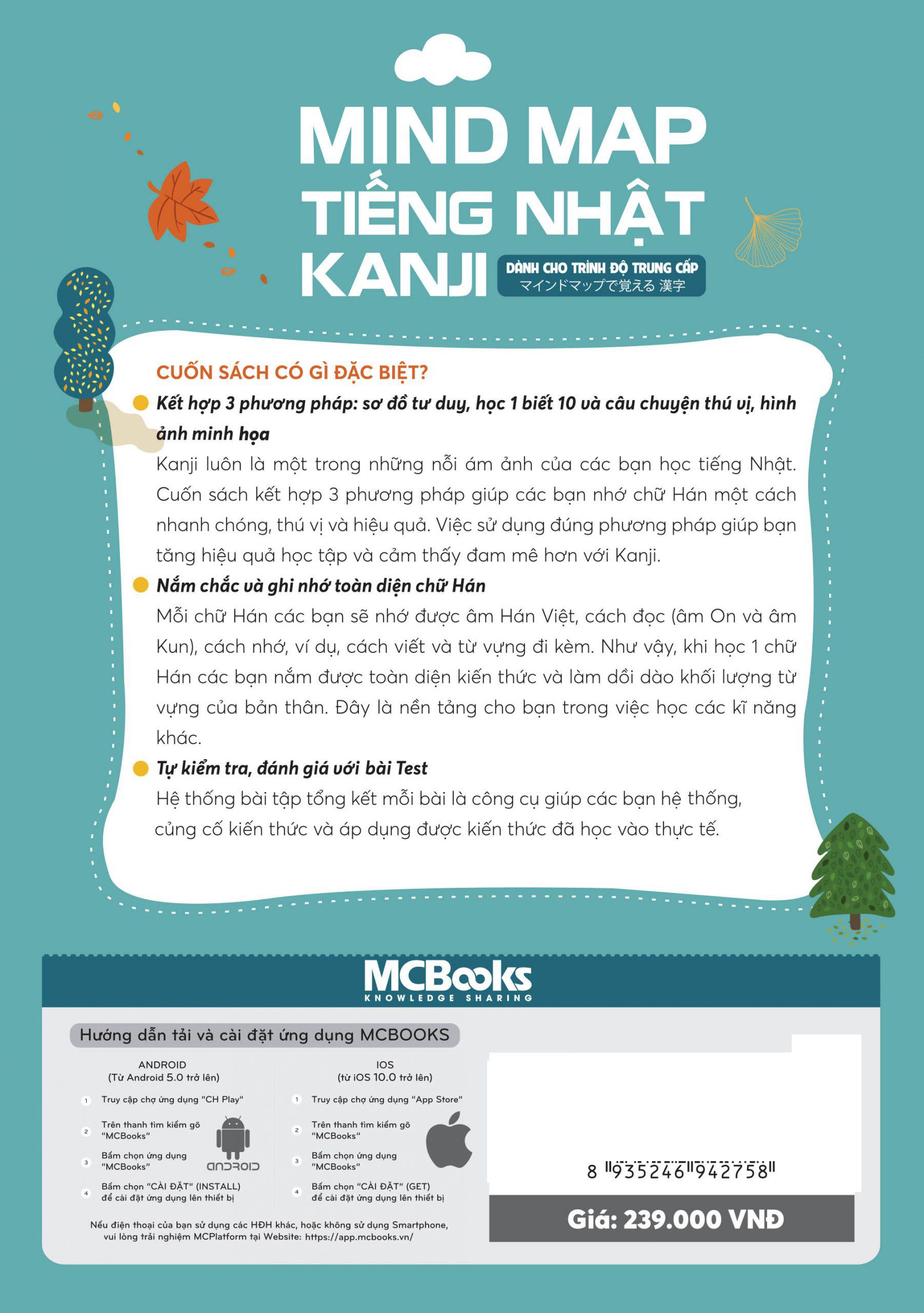 Học chữ Hán (Kanji) luôn là một thách thức đối với người học tiếng Nhật, đặc biệt là những người mới bắt đầu. Tuy nhiên, với cuốn sách “Mind map Kanji tiếng Nhật – Dành cho trình độ trung cấp”, việc học Kanji không còn là nỗi sợ hãi. Sách được biên soạn nhằm mục đích giúp học tiếng Nhật từ trung cấp trở lên, hay cho những ai muốn ôn tập lại Kanji một cách bài bản và hiệu quả.