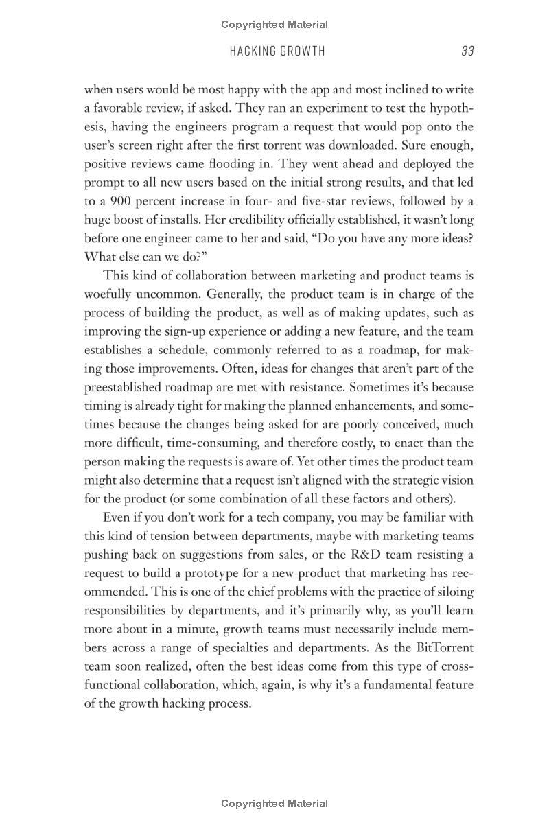 hacking growth is a highly accessible, practical, method for growth that involves cross-functional teams and continuous testing and iteration. hacking growth does for marketshare growth what the lean startup does for product development and business model generation does for strategy. hacking growth focuses on customers - how to attain them, retain them, engage them, and monetize them - rather than product.