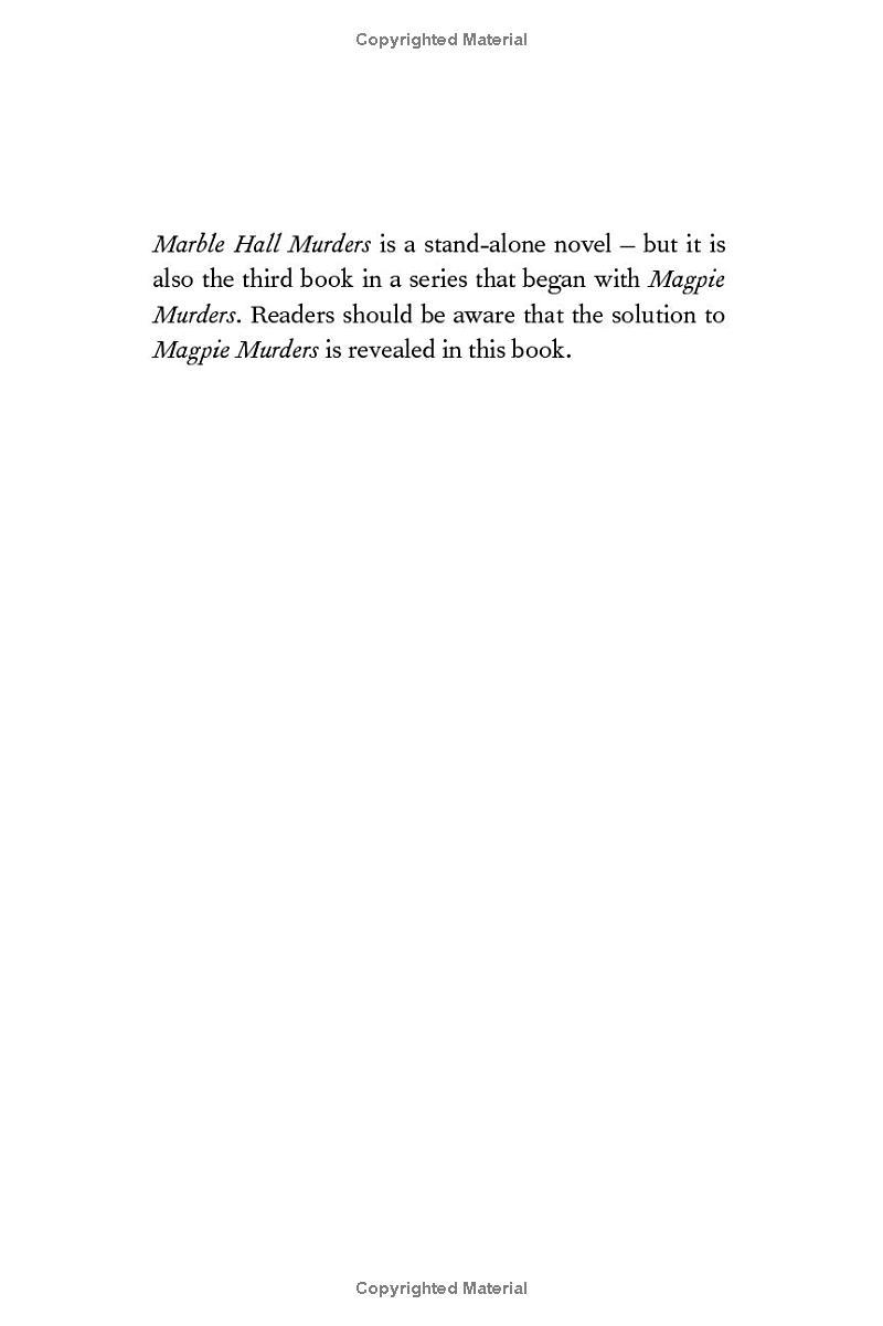 Marble Hall Murders "Horowitz dazzles with the brilliant third entry in his Susan Ryeland series . . . . [He is] is at the top of his game here, linking past and present in a virtuoso finale...