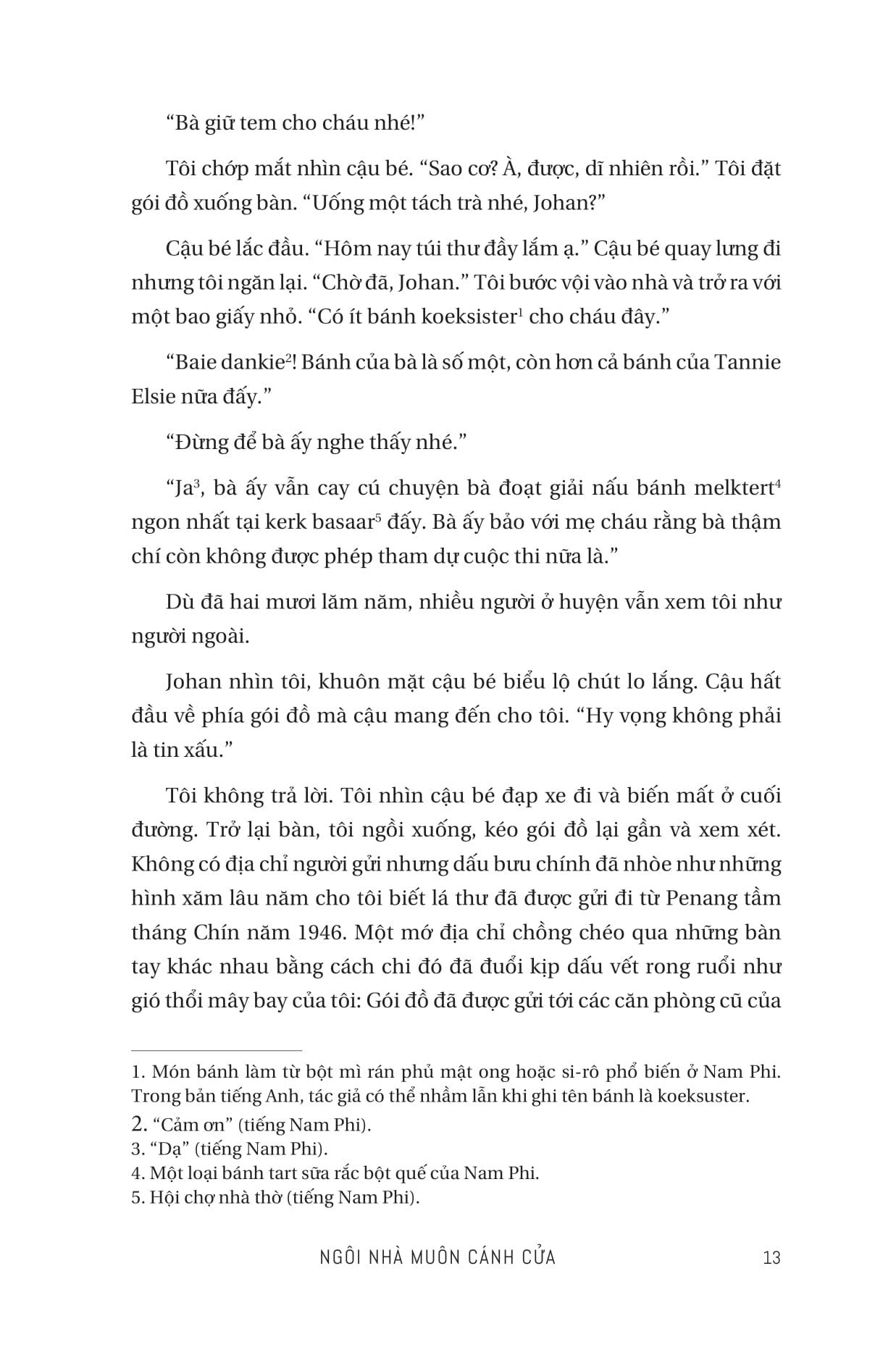 “Ngôi nhà muôn cánh cửa” không chỉ liên quan đến chiến tranh và cách mạng, đến hôn nhân và bê bối, mà còn là câu chuyện của những đứt gãy c.hủng tộc, giới tính, khuynh hướng tính dục và quyền lực, liên tục đào sâu vào bản chất phức tạp của tình yêu và tình bạn, của trung thành và bội phản. Câu chuyện diễn ra tại Khu định cư Eo biển Penang, Mã Lai năm 1921, khi Lesley Hamlyn cùng chồng chuẩn bị đón tiếp “Willie” Somerset Maugham − văn sĩ lừng danh và cũng là bạn cũ của chồng bà. Đâu ai biết chuyến thăm ấy sẽ thay đổi cuộc sống của nhiều người. Maugham − một trong những tiểu thuyết gia vĩ đại nhất thời bấy giờ − đang rơi vào khánh kiệt, sự nghiệp xuống dốc, sức khỏe sa sút, ráo riết đi tìm chủ đề mới cho cuốn sách tiếp theo của m.ình. Cùng lúc đó, Lesley đang phải chịu đựng cuộc hôn nhân trên bờ vực đổ vỡ. Tình cờ biết được mối quan hệ trong quá khứ của Lesley với nhà cách mạng Trung Quốc Tôn Dật Tiên, Maugham quyết định điều tra sâu hơn và tưởng như chủ đề cho tác phẩm tiếp theo đã xuất hiện. Thế nhưng, khi tình bạn giữa hai người phát triển và Lesley tâm sự với ông về cuộc sống ở Eo biển Penang, Maugham phát hiện ra một câu chuyện còn bất ngờ hơn nhiều so với những gì ông tưởng... “Giống như con chim núi, một câu chuyện có thể mang tên ta vượt qua những áng mây, thậm chí vượt thời gian.”