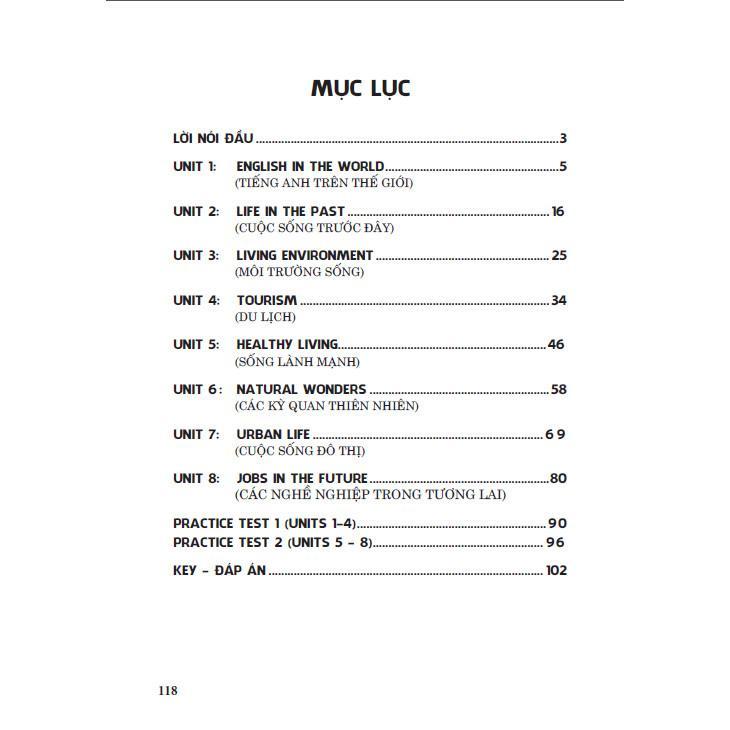Sách bao gồm nhiều chủ điểm ngữ pháp và bài tập thực hành để các em học tập, rèn luyện và trau dồi kiến thức ngữ pháp tiếng Anh. Các chủ điểm ngữ pháp bám sát nội dung trong sách giáo khoa, ngoài ra còn được mở rộng thêm để các em nắm vững hơn về cách dùng động từ nguyên mẫu có to (to-infinitive); Cụm động từ (Phrasal verb); Mệnh đề trạng ngữ/cụm trạng ngữ chỉ lý do (Adverbial clauses/phrases of reason); Ôn tập về cách dùng “Would”; Cách dùng “Used to”; Mệnh đề quan hệ xác định (defining relative clause) với đại từ quan hệ.; Cách dùng “wish” với thì quá khứ đơn (past simple); Câu tường thuật (Reported speech); Cách dùng “could” và các từ hỏi (wh-words) trước to-infinitive; Cách dùng suggest + gerund (danh động từ); Mệnh đề trạng ngữ/cụm từ chỉ sự nhượng bộ; Cấu trúc so sánh hơn với các từ nhấn mạnh; Cách dùng cấu trúc động từ + danh động từ (verb + gerund); Cách dùng mệnh đề quan hệ không xác định; Thì quá khứ tiếp diễn (Past Continuous); Cách dùng các mệnh đề trạng ngữ chỉ kết quả (adverbial clauses of result); Câu điều kiện loại 1 với động từ khiếm khuyết (First Conditional with modal verbs); Cách dùng cấu trúc “Động từ + to infinitive”.