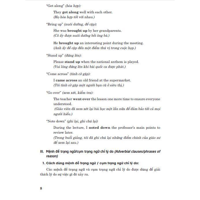 Bên cạnh việc giải thích kỹ càng các kiến thức ngữ pháp, sách còn đưa vào nhiều ví dụ minh họa và các dạng bài tập phù hợp để các em thực hành. Việc rèn luyện các bài tập này là vô cùng hữu ích bởi nó không những giúp các em sử dụng thành thạo các cấu trúc ngữ pháp mà còn giúp các em tự tin để đạt điểm tốt hơn trong các bài kiểm tra định kì.