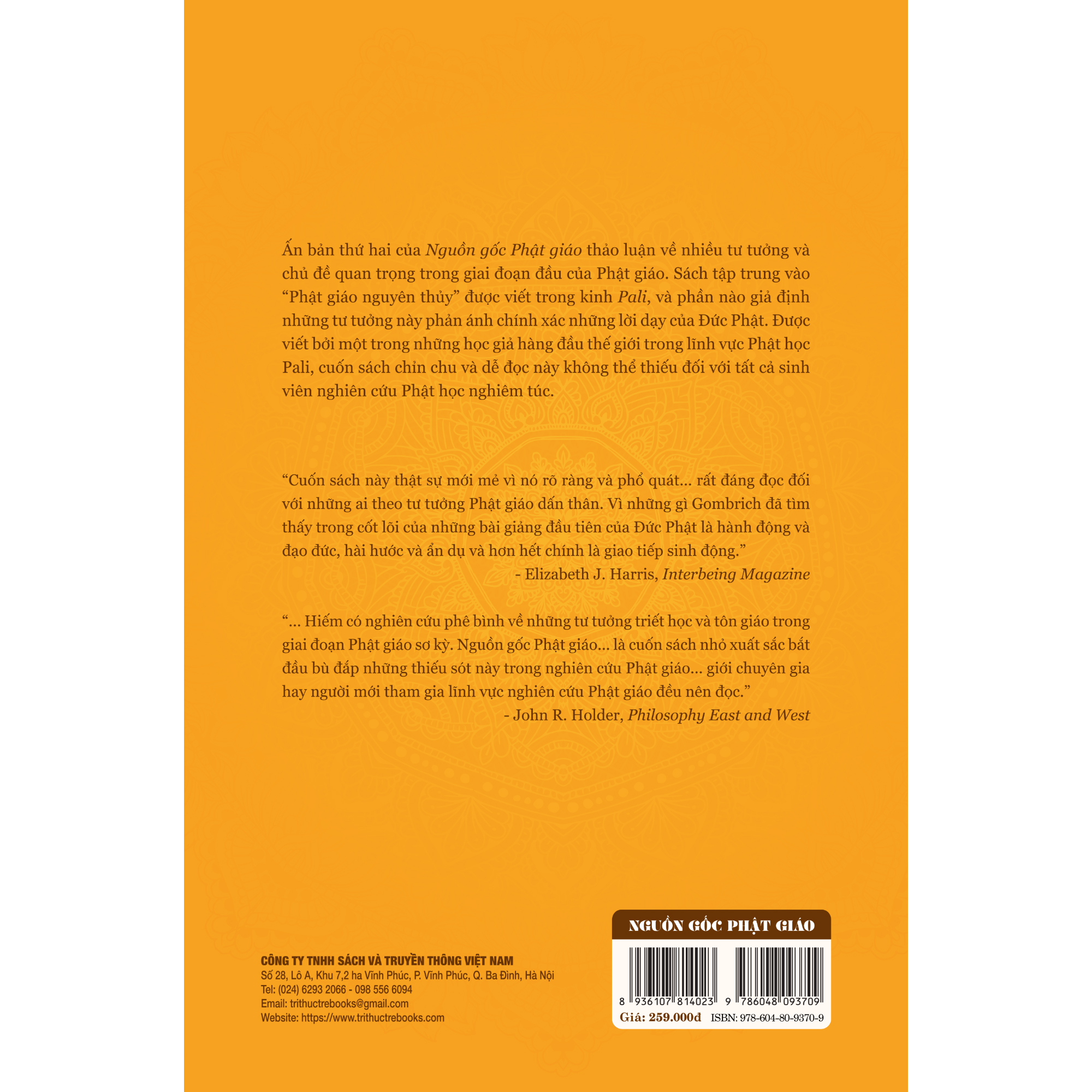 Nguồn gốc Phật giáo được viết bởi một trong những học giả hàng đầu thế giới trong lĩnh vực Phật giáo Pali - Richard F. Gombrich. Ông người sáng lập và là Chủ tịch của Trung tâm Nghiên cứu Phật học Đại học Oxford (Oxford Centre of Buddhist Studies), ông cũng là Giáo sư giảng dạy tiếng Sanskrit tại Đại học Oxford trong nhiều năm. Ngoài ra, bản dịch tiếng Việt của cuốn sách được dịch bởi những dịch giả có chuyên môn sâu về Phật học như: sư cô Thọ Hân và thầy Bảo Tâm (cả hai đều là Thạc sĩ Phật học ở Ấn Độ), hiệu đính gia Thượng tọa Thiện Chánh (Tiến sĩ ở Ấn Độ)… với mong muốn đưa đến tay độc giả một tác phẩm nghiên cứu có giá trị về Phật học.