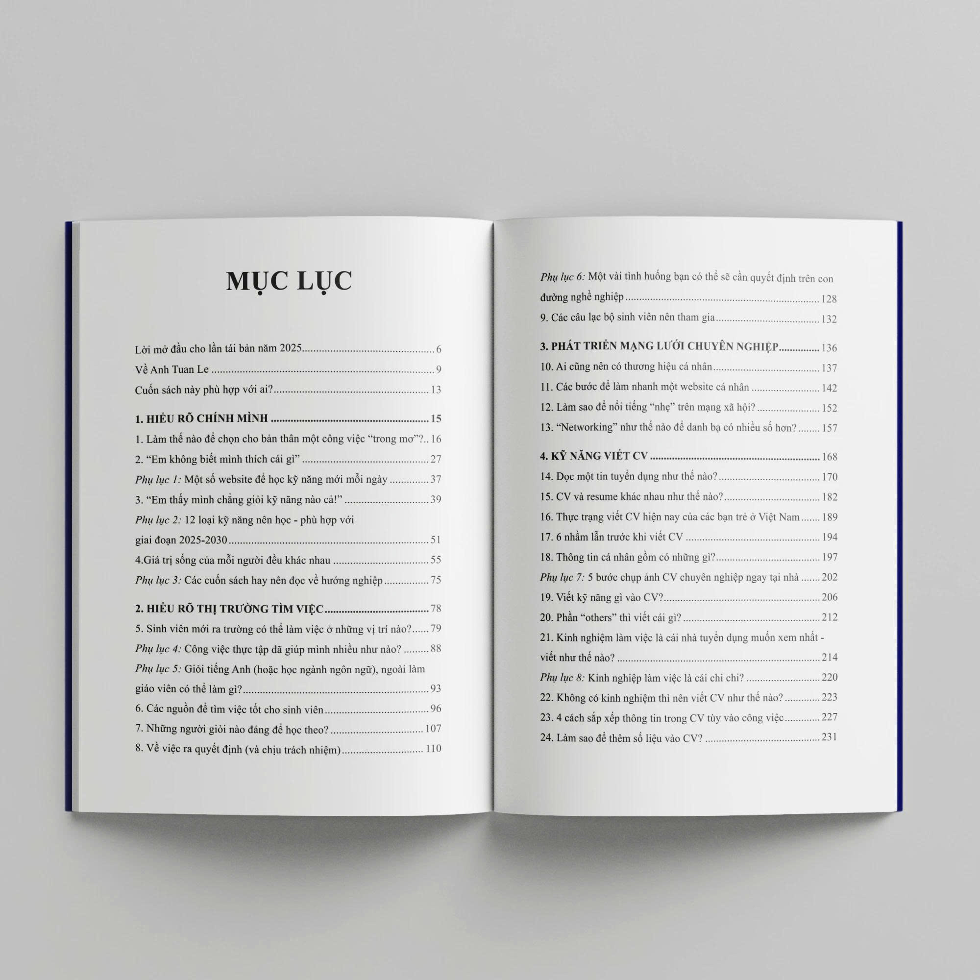 Thông qua hình ảnh “cây nghề nghiệp” - một mô hình độc đáo giúp bạn kết nối sở thích, kỹ năng và giá trị sống, cùng với các công cụ như trắc nghiệm tính cách, gợi ý ứng dụng Chat GPT để khám phá bản thân, cuốn sách dẫn dắt bạn từng bước định vị chính mình. Không phải bằng những bài học giáo điều, mà bằng những câu chuyện gần gũi, những kinh nghiệm thật như thể một người anh đi trước đang nhẹ nhàng ngồi cạnh, chỉ cho bạn cách bước tiếp để vững vàng hơn.