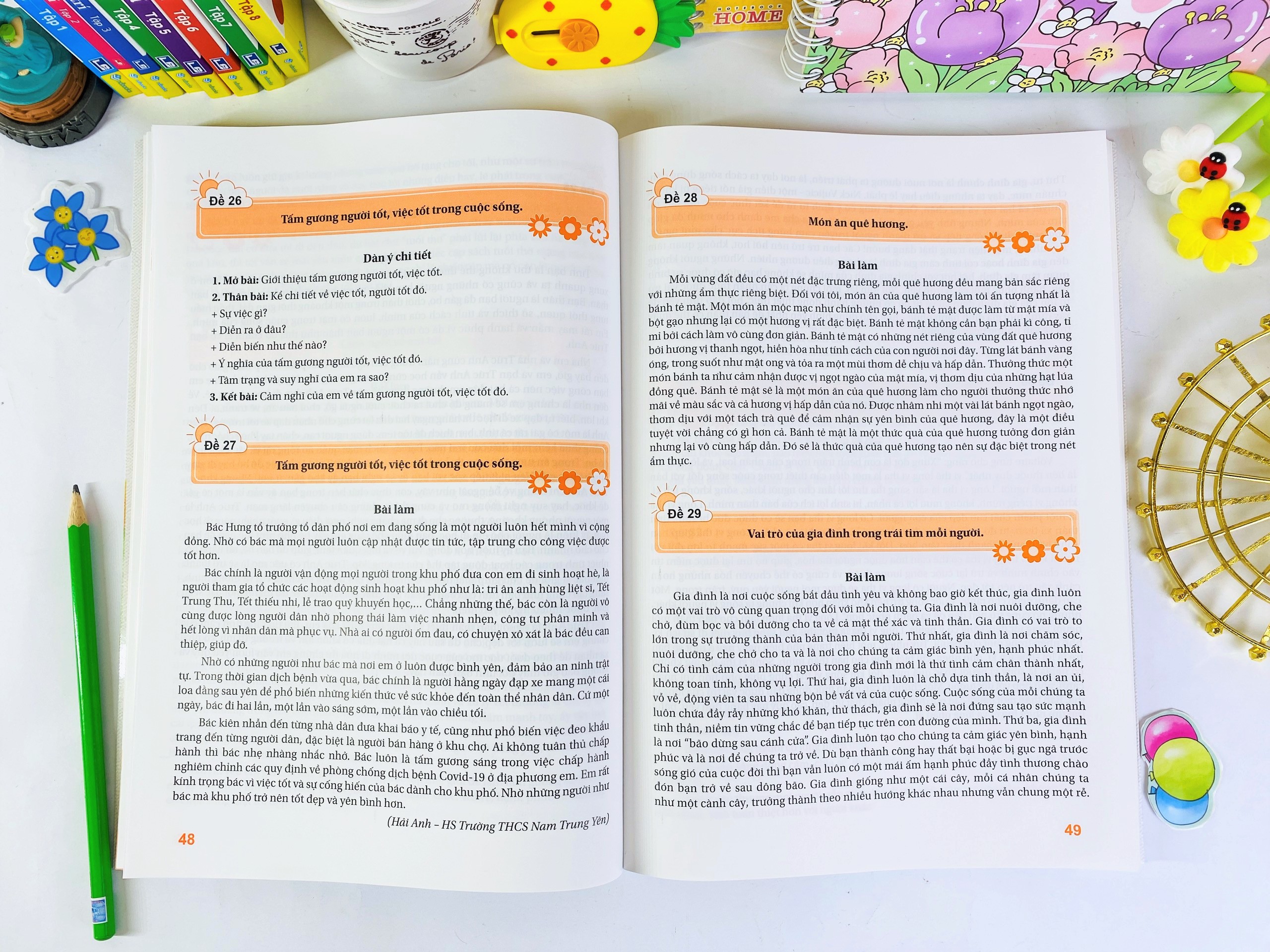 Phần thứ hai: NHỮNG BÀI VÁN CHỌN LỌC. Phần này chúng tôi giới thiệu đến các em 112 để và bài làm tham khảo, giúp các em học tập cách viết, cách dùng từ ngữ, cách trình bày một bài làm văn ứng với 6 kiểu văn bản được học ở lớp 7.
