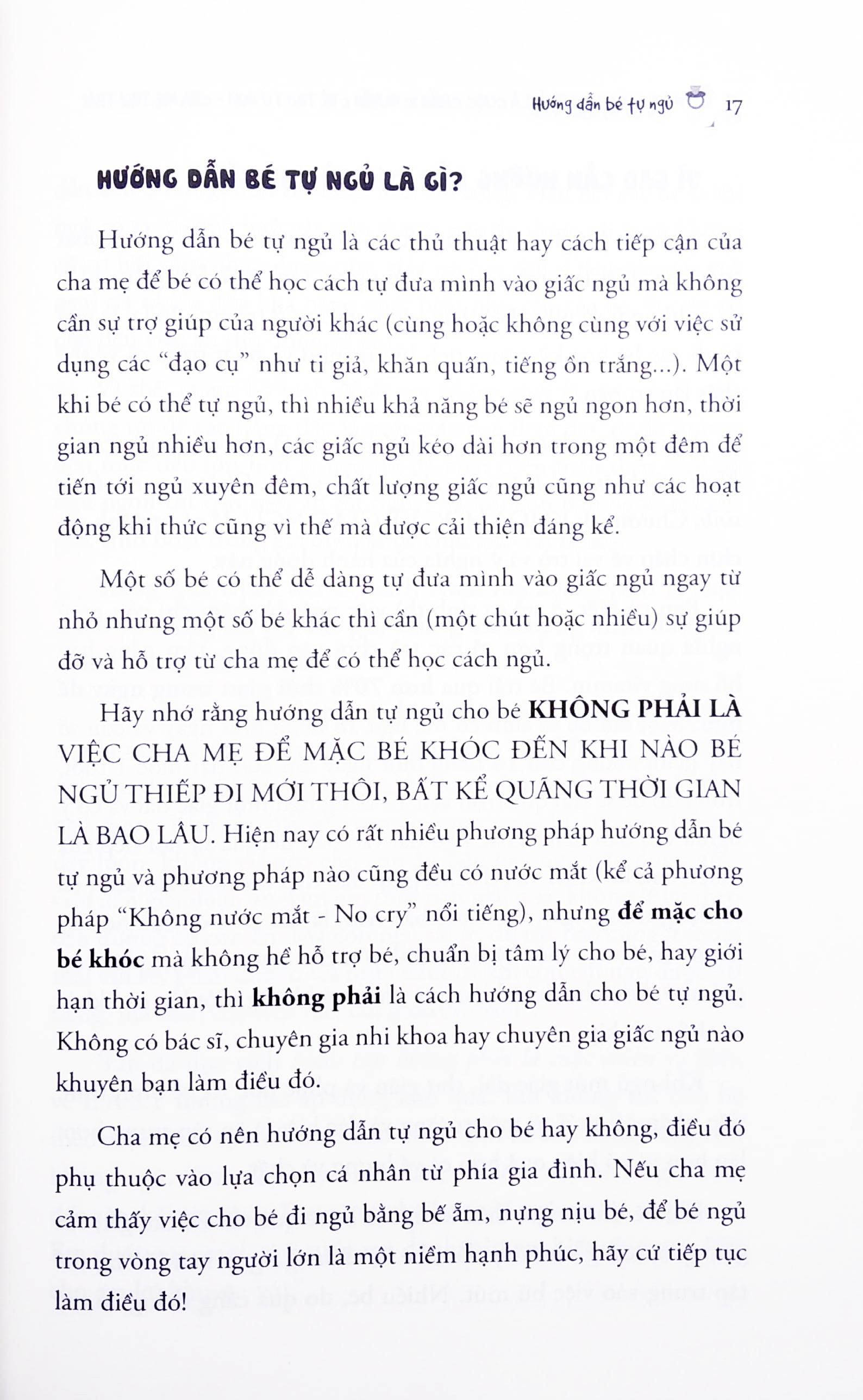 Trong những năm phát hành và theo sát các bậc cha mẹ Việt dạy con tự ngủ, chúng tôi đã chứng kiến sự thay đổi khả năng ngủ và việc đáp ứng tốt nhu cầu tự nhiên của một em bé biết tự ngủ so với chính em bé đó, khi con còn bị phụ thuộc vào người lớn để ru ẵm. Chúng tôi cũng nhận thấy không ít sự thay đổi tích cực trong cuộc sống gia đình, tinh thần của cha mẹ và ông bà khi con biết tự ngủ và ngủ đủ, và chính những điều đó là động lực để trong cuốn sách này, chúng tôi có quyết tâm để đi sâu nghiên cứu, ghi chép và truyền tải lại những phương pháp hướng dẫn tự ngủ cho bé thơ!
