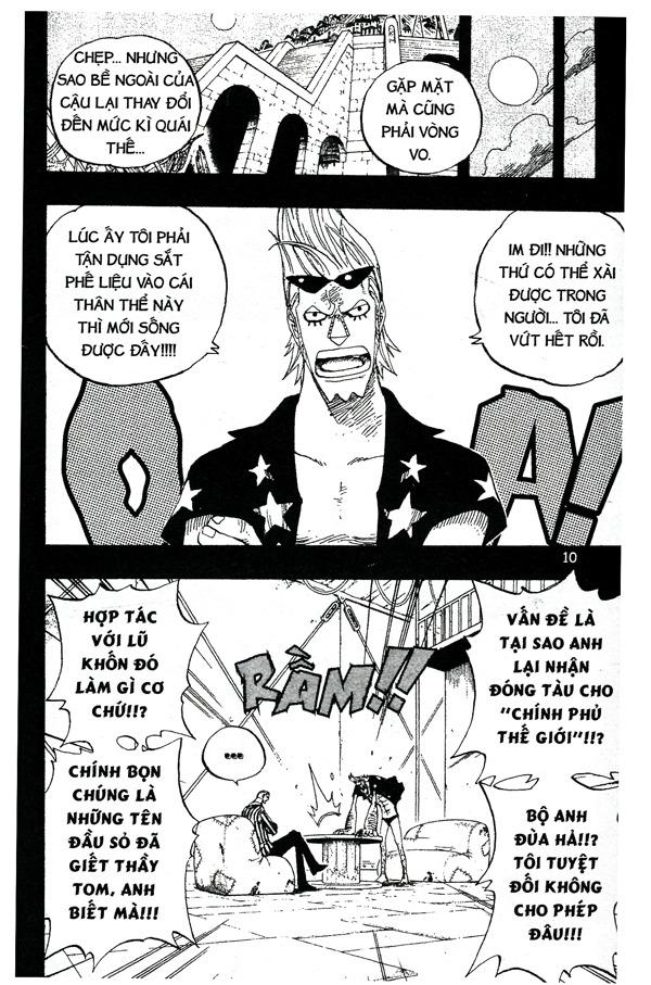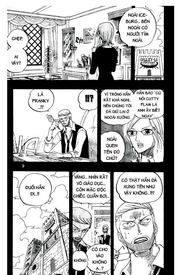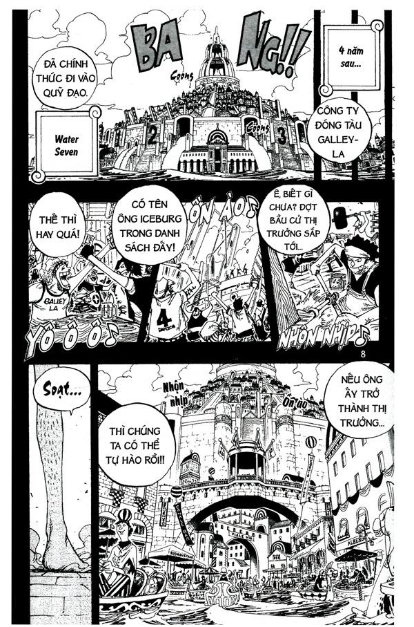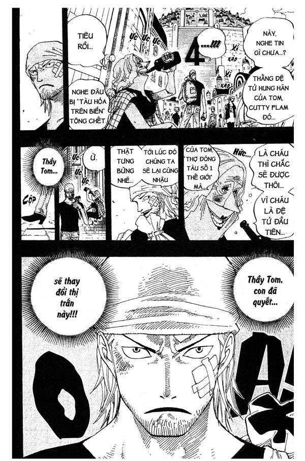 Vì muốn giải cứu Robin nên Sanji đã lén thâm nhập vào Tàu hỏa trên biển. Mặt khác, trên hòn đảo sắp bị triều cường dâng ngập, mọi người vẫn tiếp tục tìm kiếm Zoro và Luffy. Rốt cuộc họ đang ở đâu... Đúng lúc ấy, Aqua Laguna bất ngờ ập tới!?