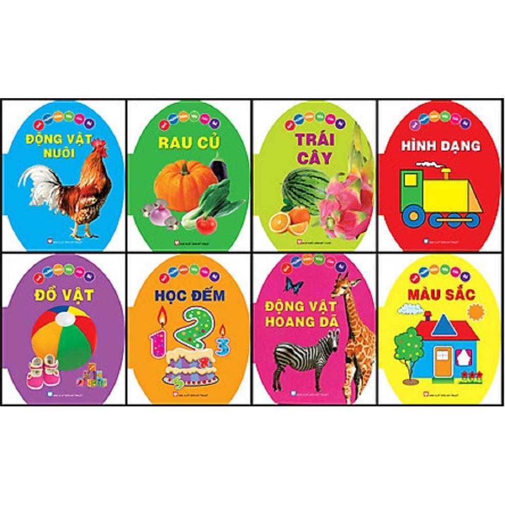 Nội dung được chia thành 8 chủ đề quen thuộc với các em: Màu sắc, Hình dạng, Rau củ, Động vật nuôi, Động vật hoang dã, Học đếm, Đồ vật, Trái cây.