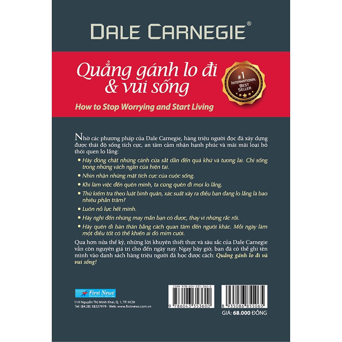 Bất kỳ ai đang sống đều sẽ có những lo lắng thường trực về học hành, công việc, những hoá đơn, chuyện nhà cửa,… Cuộc sống không dễ dàng giải thoát bạn khỏi căng thẳng, ngược lại, nếu quá lo lắng, bạn có thể mắc bệnh trầm cảm.Quẳng Gánh Lo Đi Và Vui Sốngkhuyên bạn hãy khóa chặt dĩ vãng và tương lai lại để sống trong cái phòng kín mít của ngày hôm nay. Mọi vấn đề đều có thể được giải quyết, chỉ cần bạn bình tĩnh và xác định đúng hành động cần làm vào đúng thời điểm.