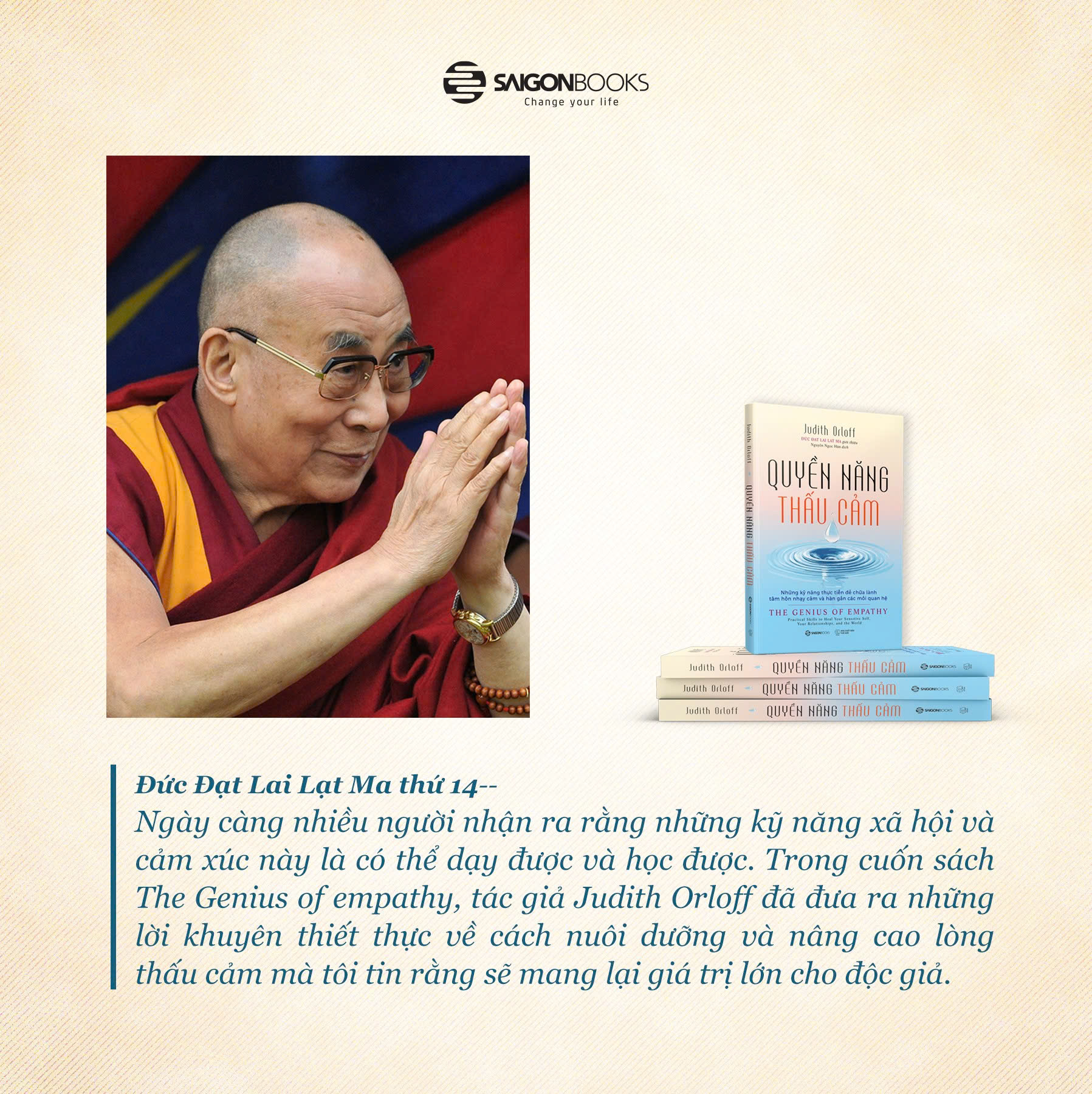 QUYỀN NĂNG THẤU CẢM – NHỮNG KỸ NĂNG THỰC TIỄN ĐỂ CHỮA LÀNH TÂM HỒN NHẠY CẢM VÀ HÀN GẮN CÁC MỐI QUAN HỆ Thấu cảm không chỉ là lòng tốt – đó là một kỹ năng sống còn Trong thời đại phân cực, ồn ào và kiệt sức cảm xúc như hiện nay, sự thấu cảm không còn là một phẩm chất xa xỉ – mà trở thành một kỹ năng thiết yếu. Trong Quyền năng thấu cảm, bác sĩ Judith Orloff – một bác sĩ tâm thần đồng thời là một người thấu cảm – mang đến một cẩm nang sâu sắc và dễ áp dụng giúp mỗi người học cách kết nối với trái tim mình, để sống mạnh mẽ mà không bị kiệt sức bởi cảm xúc. Cuốn sách mở ra một hành trình ba bước: thấu cảm với chính mình, với người khác và với thế giới – với nhiều chiến lược cụ thể, bài tập thực hành và chia sẻ cá nhân chân thật. Chữa lành từ bên trong: Khi thấu cảm bắt đầu với chính bạn Trước khi có thể quan tâm đến người khác một cách bền vững, bạn cần học cách đối xử tử tế với chính mình. Sách giúp bạn nhận diện những rào cản vô hình như thói quen tự chỉ trích, suy nghĩ quá mức, hay xu hướng "gánh vác" cảm xúc của người khác. Tác giả không chỉ chia sẻ kinh nghiệm lâm sàng, mà còn dẫn dắt bạn qua những bài tập cụ thể để biết nói “không”, thiết lập ranh giới và tự chăm sóc bản thân – một cách dũng cảm và lành mạnh. Trong Quyền năng thấu cảm, bác sĩ Judith Orloff – một chuyên gia tâm thần học và cũng là người thấu cảm – dẫn dắt bạn khám phá sức mạnh thực tiễn và sâu sắc của lòng thấu cảm. Cuốn sách được chia làm ba phần, mỗi phần là một bước tiến trên hành trình chữa lành. PHẦN 1 – TỰ CHỮA LÀNH Chương 1: Thấu cảm là chìa khóa sống còn trong thế giới hỗn loạn. Chương 2: Ngừng suy nghĩ quá mức, sống từ trái tim. Chương 3: Học cách tử tế với chính mình và thiết lập ranh giới lành mạnh. Chương 4: Loại bỏ những rào cản nội tâm như sợ hãi, kiêu ngạo, oán giận. PHẦN 2 – CHỮA LÀNH CÁC MỐI QUAN HỆ Chương 5: Lắng nghe bằng trái tim để người khác thấy được thấu hiểu. Chương 6: Thấu cảm trong gia đình, bạn bè và công sở. Chương 7: Cho đi một cách lành mạnh, không kiệt sức. Chương 8: Nhận diện người ái kỷ, độc hại – và bảo vệ chính mình. PHẦN 3 – CHỮA LÀNH THẾ GIỚI Chương 9: Lãnh đạo bằng thấu cảm – sức mạnh mới của người dẫn dắt. Chương 10: Tha thứ để giải phóng mình khỏi gánh nặng cảm xúc. Chương 11: Cùng nhau kết nối, chữa lành và xây dựng một thế giới bao dung hơn. “Quyền năng thấu cảm” là món quà tuyệt vời cho những người nhạy cảm, những nhà lãnh đạo, những người đang tìm kiếm sự cân bằng trong các mối quan hệ và bất kỳ ai đang khao khát một cuộc sống nhẹ nhõm, sâu sắc và có ý nghĩa hơn.