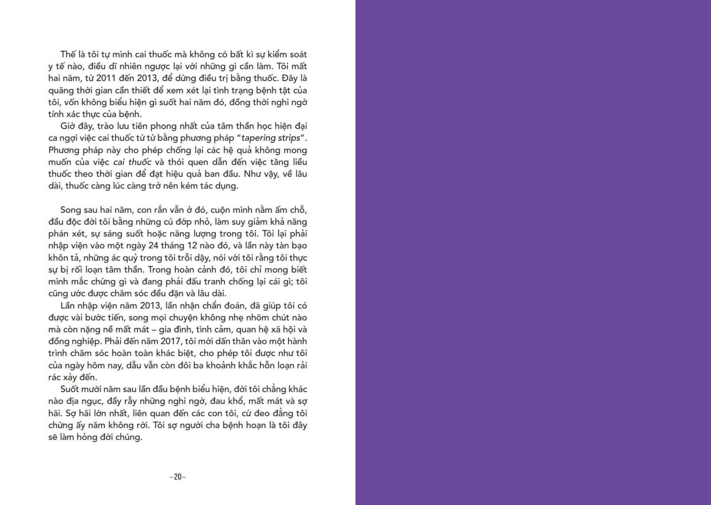 Rối Loạn Lưỡng Cực - Hành Trình Dài Chung Sống là cuốn sách sống động với nhiều hình ảnh minh hoạ giúp chúng ta hiểu rõ hơn về chứng rối loạn lưỡng cực và phần
