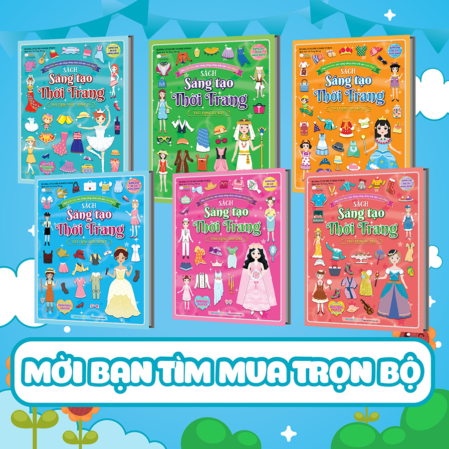 Bộ sách sáng tạo thời trang gồm có 6 cuốn, mỗi cuốn có 8 bối cảnh đa dạng giúp các bé thỏa sức sáng tạo, trở thành một nhà thiết kế thời trang tài ba. Ngoài ra, với hơn 100 stickers bao gồm trang phục và phụ kiện như vương miện, mũ, túi xáé có thể kết hợp chúng lại và hòa mình vào không gian sáng tạo theo từng chủ đề