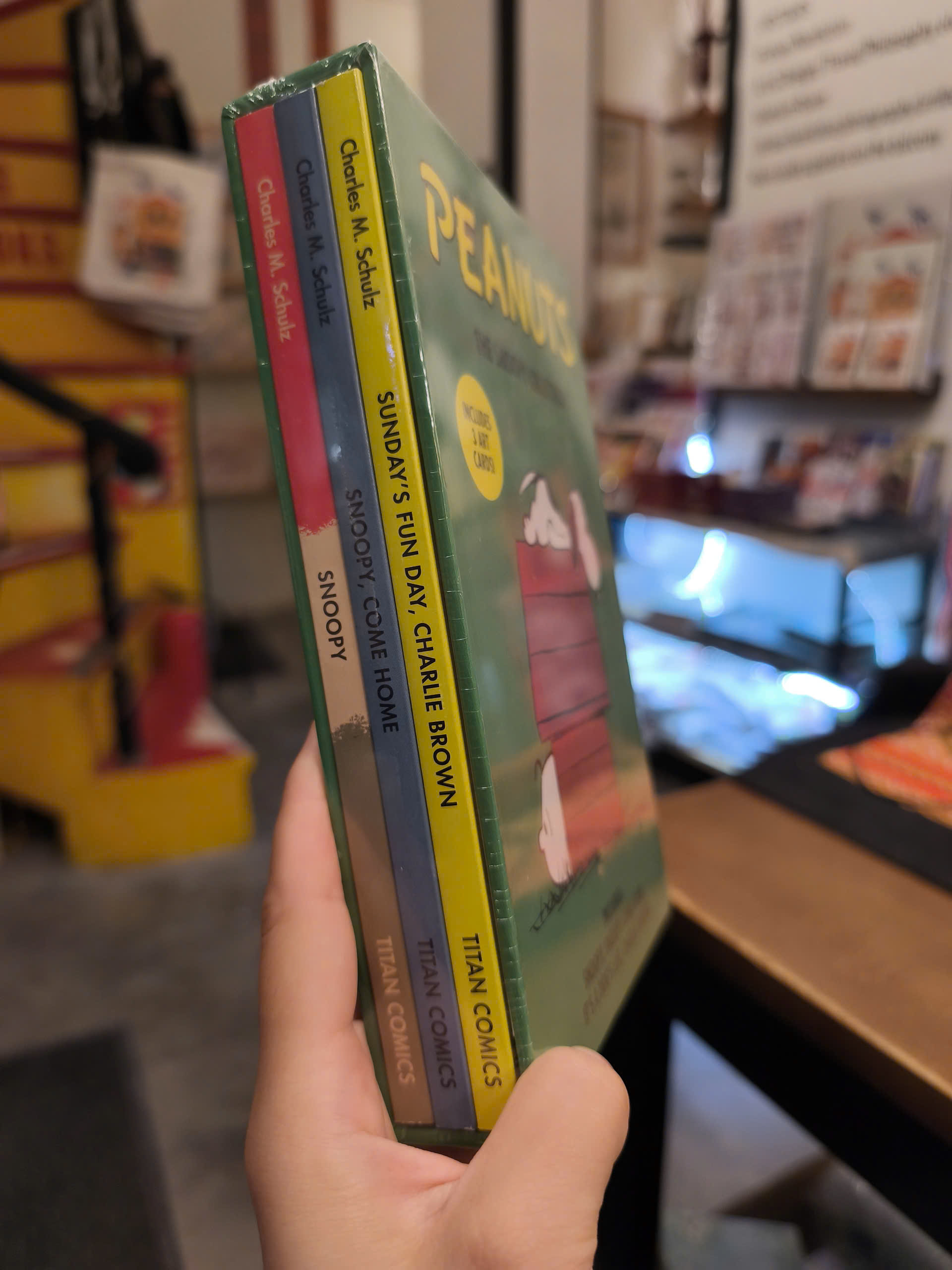 Bộ sưu tập hộp sách mô phỏng ba tập truyện tranh SNOOPY kinh điển – SNOOPY, SNOOPY, COME HOME và SUNDAY'S FUN DAY, CHARLIE BROWN. Với 128 trang mỗi tập, bạn sẽ có hơn 360 trang truyện tranh kinh điển của Peanuts Daily và Sunday Newspaper để thưởng thức. Bao gồm cả các thẻ bài minh họa với hình ảnh bìa của từng cuốn sách.