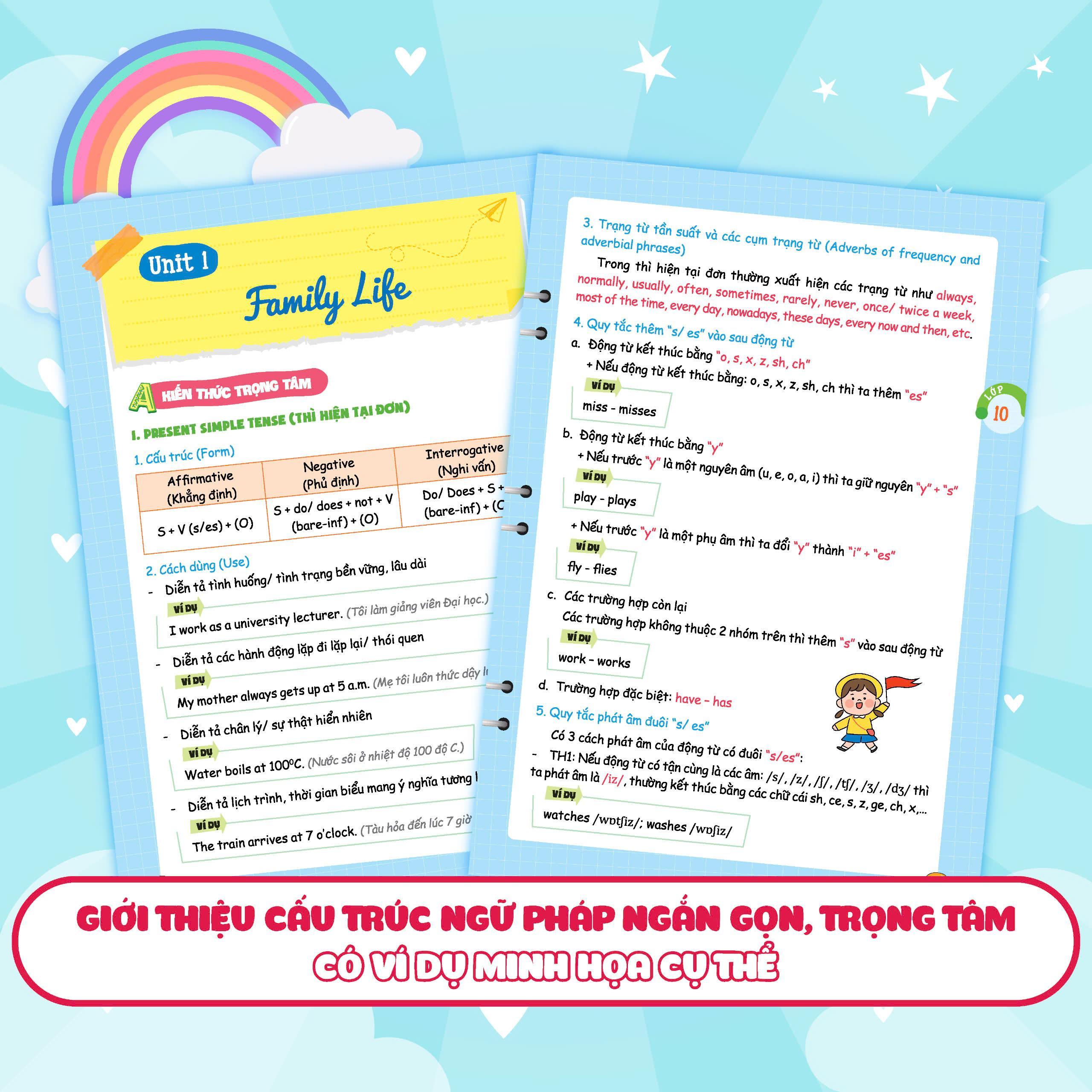 - Sách hệ thống các kiến thức trọng tâm của chương trình học Cuốn sách được thiết kế dựa trên khung chương trình môn tiếng Anh Trung học phổ thông của Bộ Giáo dục và Đào tạo. Điều này đảm bảo rằng nội dung của sách tương ứng với chương trình học của lớp 10, 11 và 12, giúp học sinh nắm vững kiến thức cần thiết.