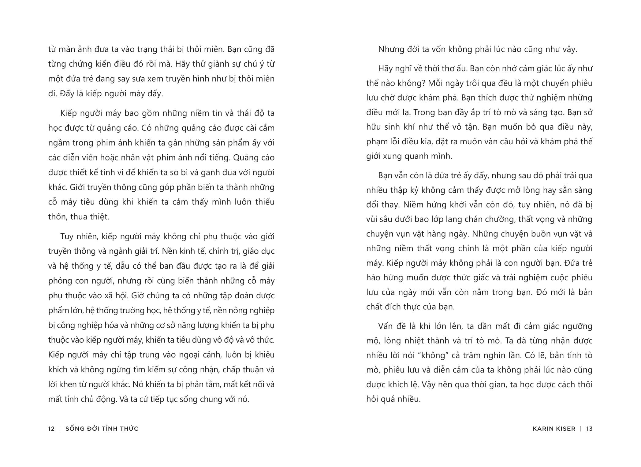 Nếu bạn đang mắc kẹt trong lối mòn, hoặc sống một cuộc sống theo thói quen, hằng ngày lặp đi lặp lại những công việc như một cái máy móc, để mỗi ngày trôi qua vô nghĩa thì bạn đang có một kiểu sống do robot điều khiển. Robot ở đây chính là tiềm thức của bạn, và bạn đang sống theo tiềm thức thay vì ý thức. Karin Kiser sẽ giúp bạn thoát khỏi con robot và sống một cuộc sống gắn kết hơn, một cuộc sống có chủ đích.
