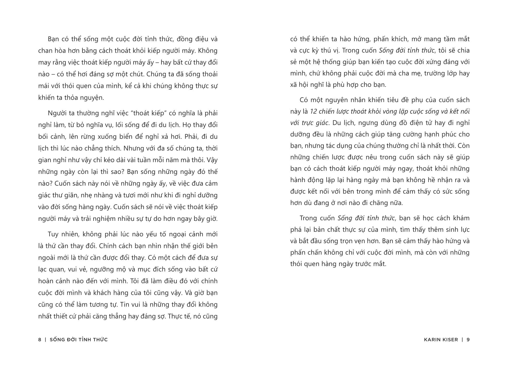 Với 12 chiến lược tái lập tư duy, ngắt kết nối với nguồn điện “người máy” cùng các bài thực hành, câu hỏi suy ngẫm - Sống đời tỉnh thức đưa bạn quay trở về mong muốn cơ bản nhất của con người: được tự do lựa chọn cách sống, không phụ thuộc vào kỳ vọng của xã hội, thói quen hay ký ức. Từ đó đem đến cho bạn công thức để hạnh phúc lâu dài, vượt qua sự hỗn loạn của cuộc sống với một tâm trí minh mẫn, rũ bỏ sự tẻ nhạt và đơn điệu trong thói quen hàng ngày.
