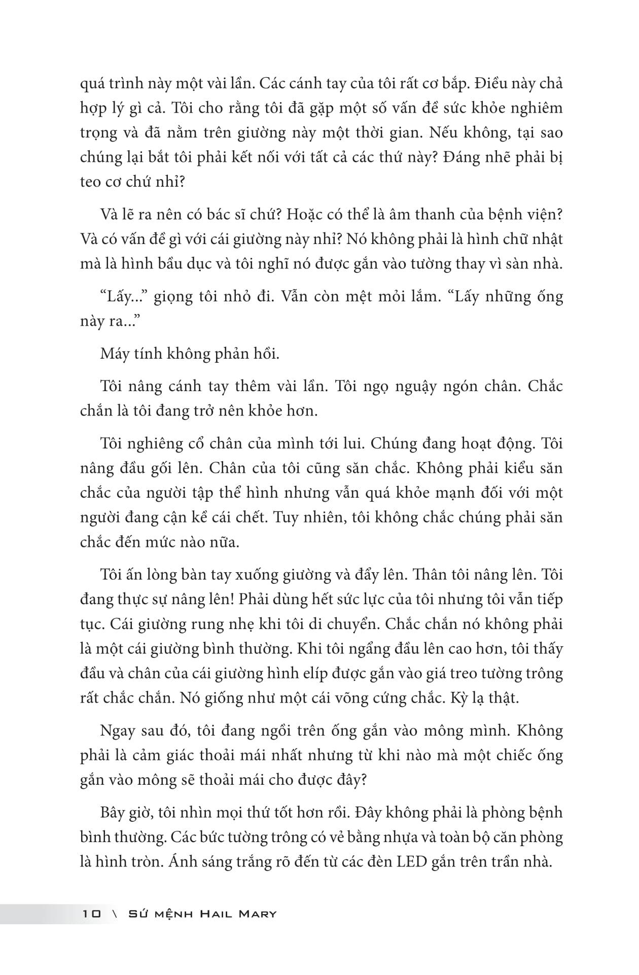 - Top 100 cuốn sách hay nhất thế kỷ 21 do độc giả New York Times bình chọn Một sứ mệnh tuyệt vọng. Một phi hành gia đơn độc. Và cơ hội cuối cùng để cứu lấy Trái Đất. Ryland Grace thức dậy trong một con tàu vũ trụ tối tân, trôi dạt giữa không gian, cách xa Trái Đất hàng triệu dặm ánh sáng. Không ký ức, không đồng đội, chỉ có hai thi thể lạnh lẽo bên cạnh. Anh không biết m.ình là ai, đang ở đâu, hay tại sao lại là người sống sót cuối cùng. Những mảnh ký ức rời rạc dần trở lại – cùng với một sự thật kinh hoàng: anh là niềm hy vọng cuối cùng của nhân loại. Một chủng vi sinh vật ngoài hành tinh đang hút năng lượng từ Mặt Trời và làm chậm quá trình phát sáng của nó, đẩy Trái Đất vào viễn cảnh diệt vong. Nhiệm vụ của Ryland là tìm ra cách ngăn chặn mối đe dọa này. Nhưng anh không phải là sinh vật duy nhất trong vũ trụ thực hiện sứ mệnh đó… Giữa hành trình cô độc, Ryland bất ngờ gặp gỡ một sinh vật thông minh đến từ một hành tinh xa xôi cũng đang gặp hiểm họa tương tự. Không nói cùng ngôn ngữ, không cùng nền văn minh, nhưng họ cùng chung mục tiêu: sống sót, cứu lấy hành tinh của m.ình. Và từ đó, một tình bạn chưa từng có trong lịch sử nhân loại được hình thành. Khi giải pháp cuối cùng đã nằm trong tay, Ryland buộc phải đối mặt với quyết định khó khăn nhất đời m.ình. Trở về Trái Đất với vinh quang – hay ở lại, đơn độc giữa không gian, hy sinh tất cả để cứu lấy bạn m.ình và một thế giới không phải của anh? Sứ Mệnh Hail Mary là một bản giao hưởng giữa khoa học đỉnh cao, trí tưởng tượng táo bạo và thông điệp nhân văn. Hồi hộp, thông minh và đầy cảm xúc, đây là câu chuyện về hy vọng, sự sống còn – và một tình bạn vượt qua mọi giới hạn của không gian và giống loài.