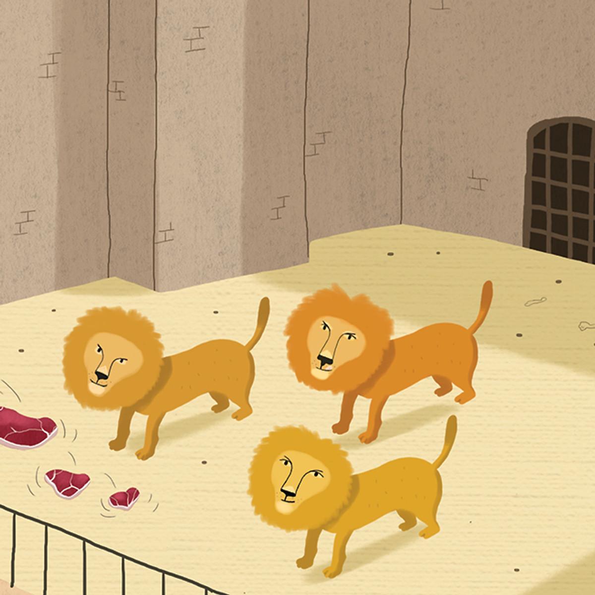 Fura, Fêrô và Vôra là ba con sư tử bị người ta bắt giam và bỏ đói. Khi Đa-ni-en, người bạn của vua Đa-ri-ô, vì âm mưu, bị kết án và bị ném vào hầm
