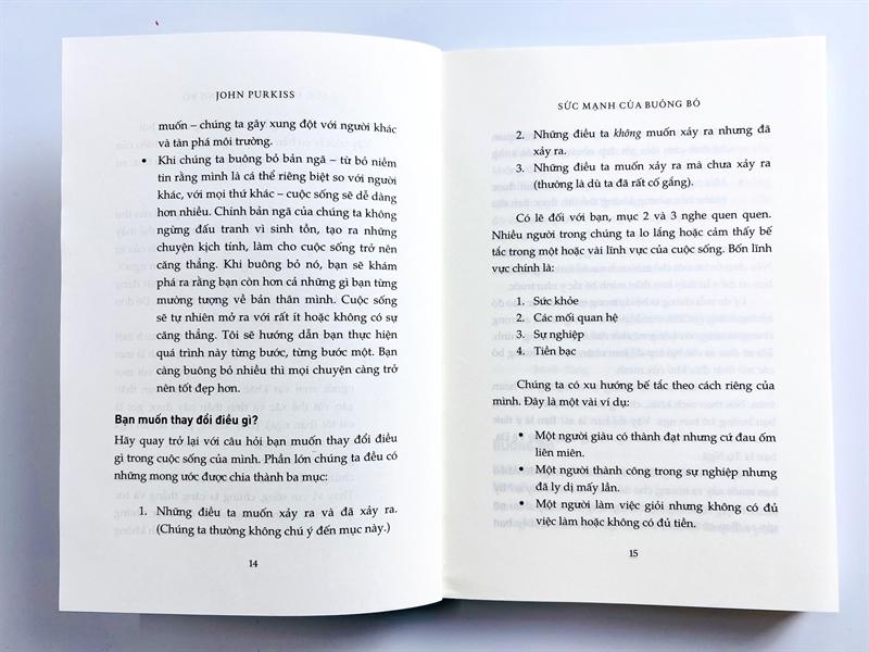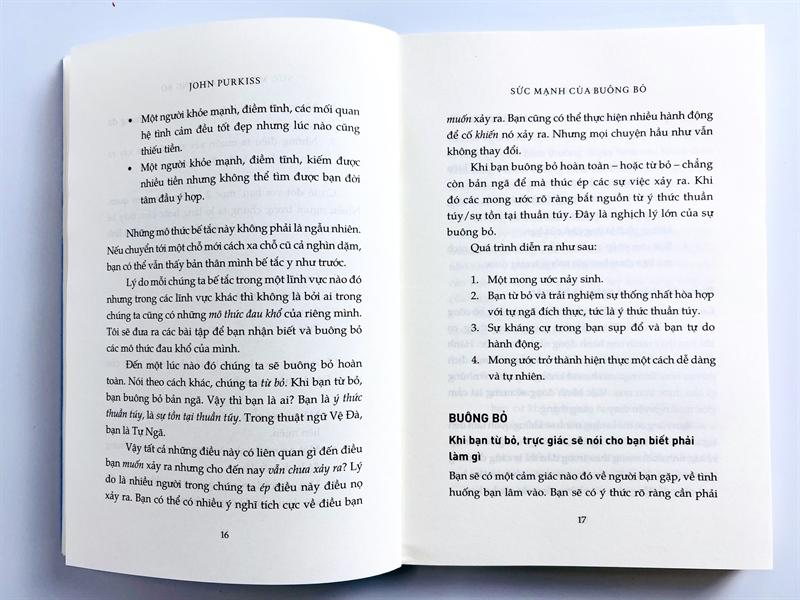 Tác giả: John Purkiss Dịch giả: Nguyễn Bích Lan Nhà xuất bản: Dân Trí Số trang: 270 Kích thước: 14 x 20.5cm Ngày phát hành: 2023 Trên hành trình phát triển bản thân, hẳn sẽ có lúc ai cũng phải đứng trước một lựa chọn: níu giữ hay buông bỏ? Níu giữ hiển nhiên khó khăn, nhưng buông bỏ… liệu có dễ dàng? Buông, tiếng ấy nghe thật nhẹ, nhưng đằng sau đó là vô vàn tầng lớp, là biết bao trở ngại đã chồng chất lên trong suốt cuộc đời: những kỳ vọng, những sợ hãi, những thiếu niềm tin, những suy nghĩ cố hữu, những tổn thương xưa cũ,… Bất chấp tất thảy những điều ấy, việc từ bỏ và nương theo dòng chảy, thuận theo trực giác, tận hưởng bất kỳ điều gì sắp xảy đến, vẫn thật mời gọi, như nhen lên tia hy vọng về một cuộc đời thay đổi. Cuốn sách này thổi tia hy vọng ấy lên thành ngọn lửa, cho nó một bệ đỡ vững vàng, rồi dẫn dắt từng đường đi nước bước để ta buông những điều đang kìm hãm và để đời cất cánh. Tại sao cần buông bỏ? Buông bỏ bằng cách nào? Hàng nghìn năm tri thức tinh thần và một trăm năm tâm lý học hiện đại đã đúc kết thành một hệ thống những bài thực hành trực diện, đơn giản và hiệu quả trong Sức mạnh của buông bỏ.