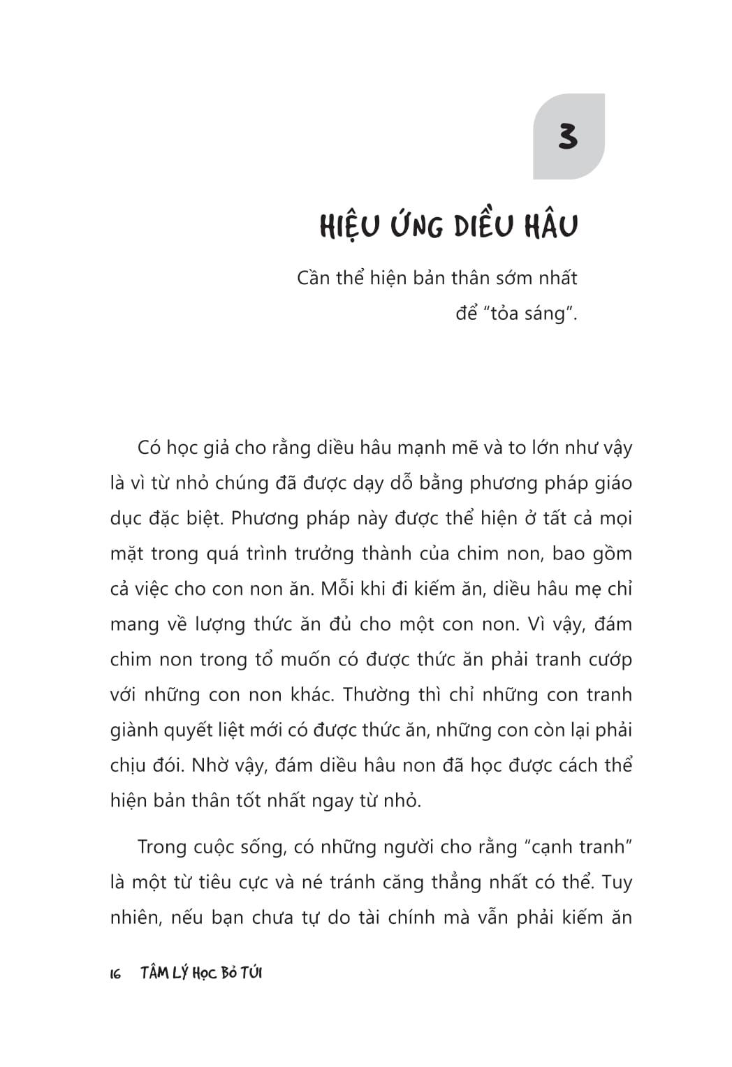 Tâm lý học bỏ túi – cuốn từ điển giải đáp 100 hiện tượng thông dụng mà ai cũng từng trải qua như: xu hướng tiêu cực về bản thân khi bị chê trách, né tránh khi nghĩ đến ngày thứ Hai đầu tuần, tiếc nuối hối hận trước những thứ không có được hoặc bỏ lỡ,...