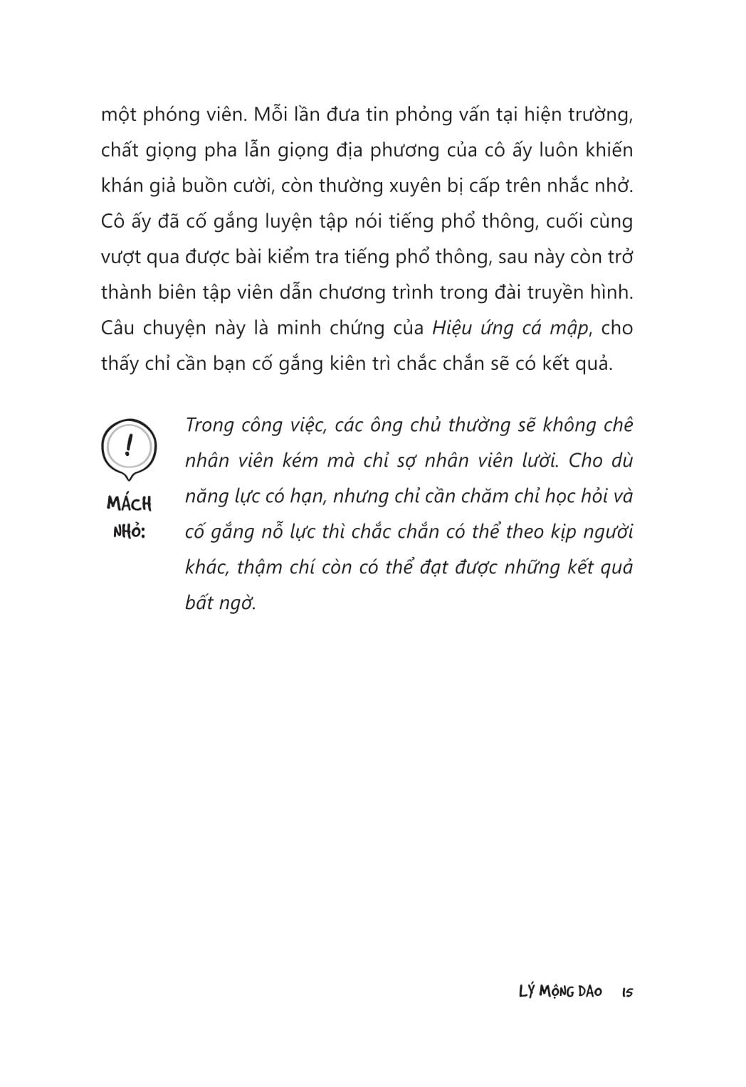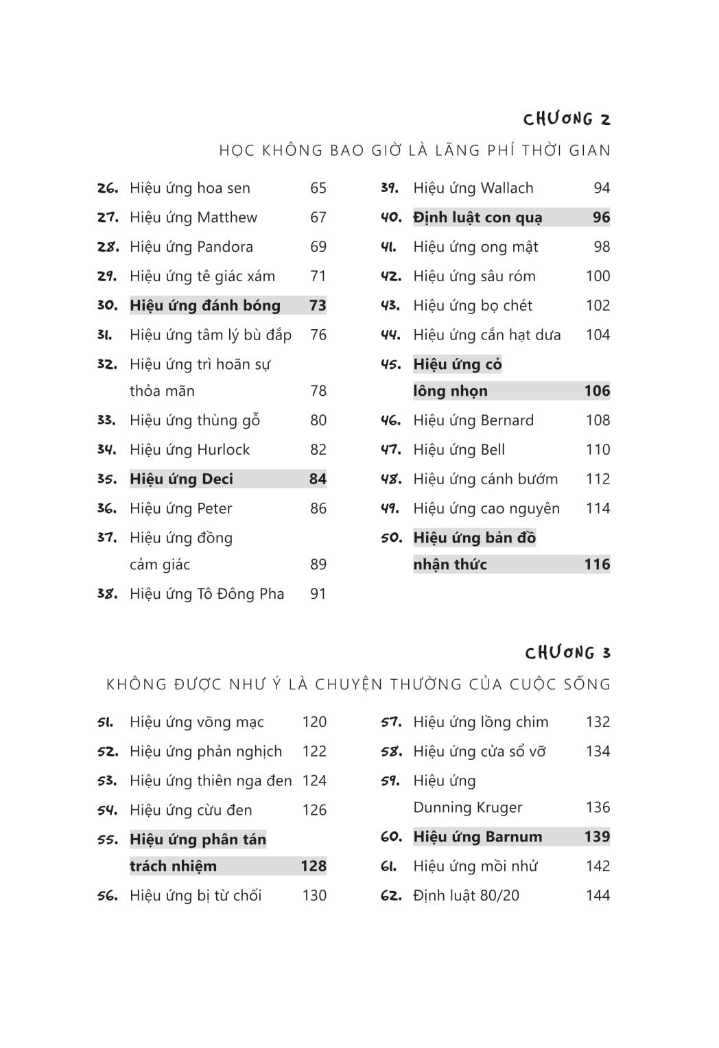 Tập trung chính vào bốn khía cạnh cuộc sống: cải thiện bản thân, xây dựng thái độ sống, quản lý cảm xúc, đối phó tình huống tại nơi học tập và làm việc. 100 hiệu ứng tâm lý tưởng chừng “đồ sộ” này lại là mẹo nhỏ giúp bạn thoát khỏi căn bệnh “dị ứng cuộc sống” và tìm thấy dũng khí để yêu cuộc đời thêm một chút.