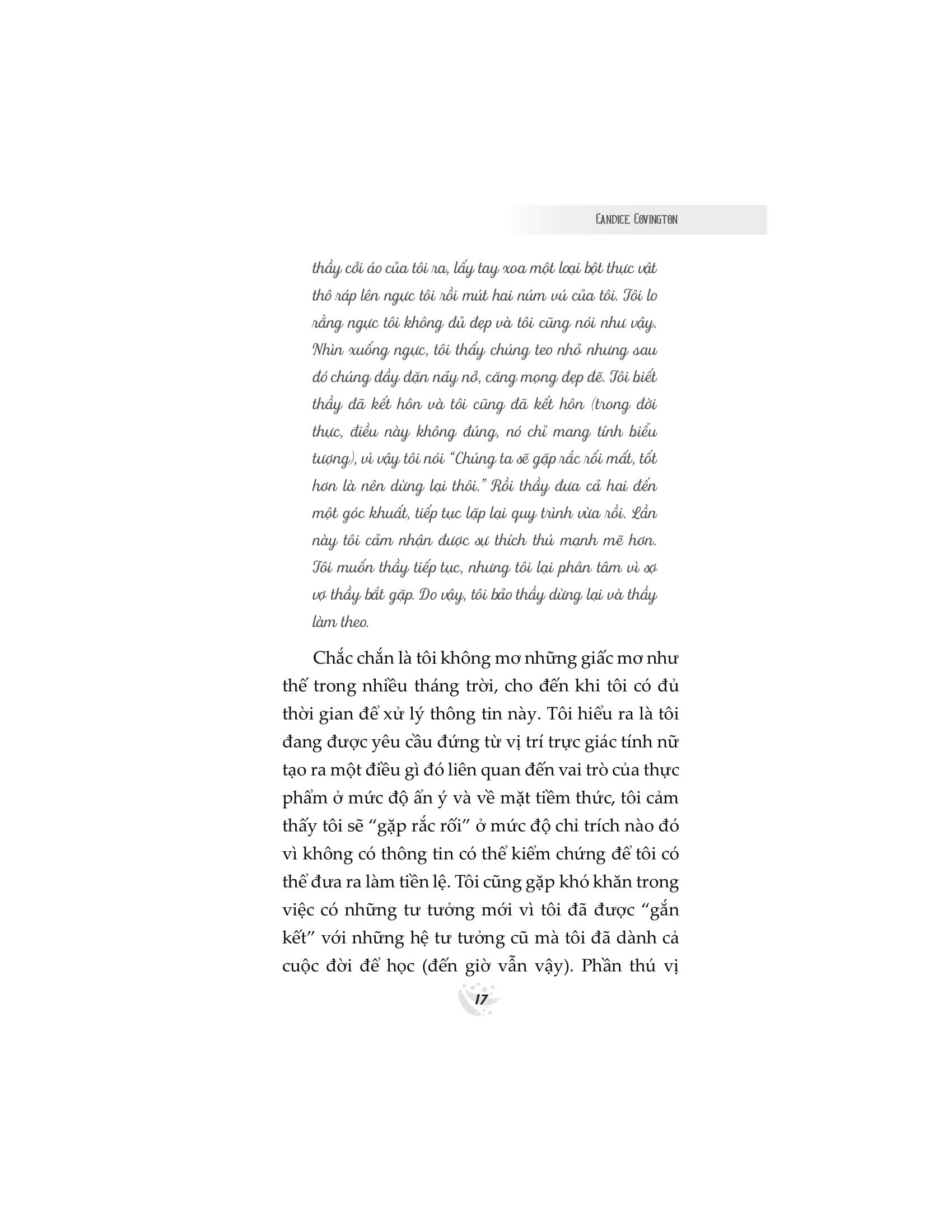 Là một chuyên gia hàng đầu trong lĩnh vực liệu pháp hương thơm và năng lượng, Candice Covington lý giải chi tiết cách thực phẩm ảnh hưởng đến trạng thái tinh thần và cảm xúc, đồng thời cung cấp những hướng dẫn rõ ràng để lựa chọn thực phẩm giúp cải thiện sức khỏe tổng thể. Cuốn sách này sẽ mang đến một góc nhìn thú vị rằng, bữa ăn không chỉ để nuôi dưỡng cơ thể mà còn là công cụ mạnh mẽ để cân bằng năng lượng, điều chỉnh cảm xúc và nâng cao đời sống tinh thần.