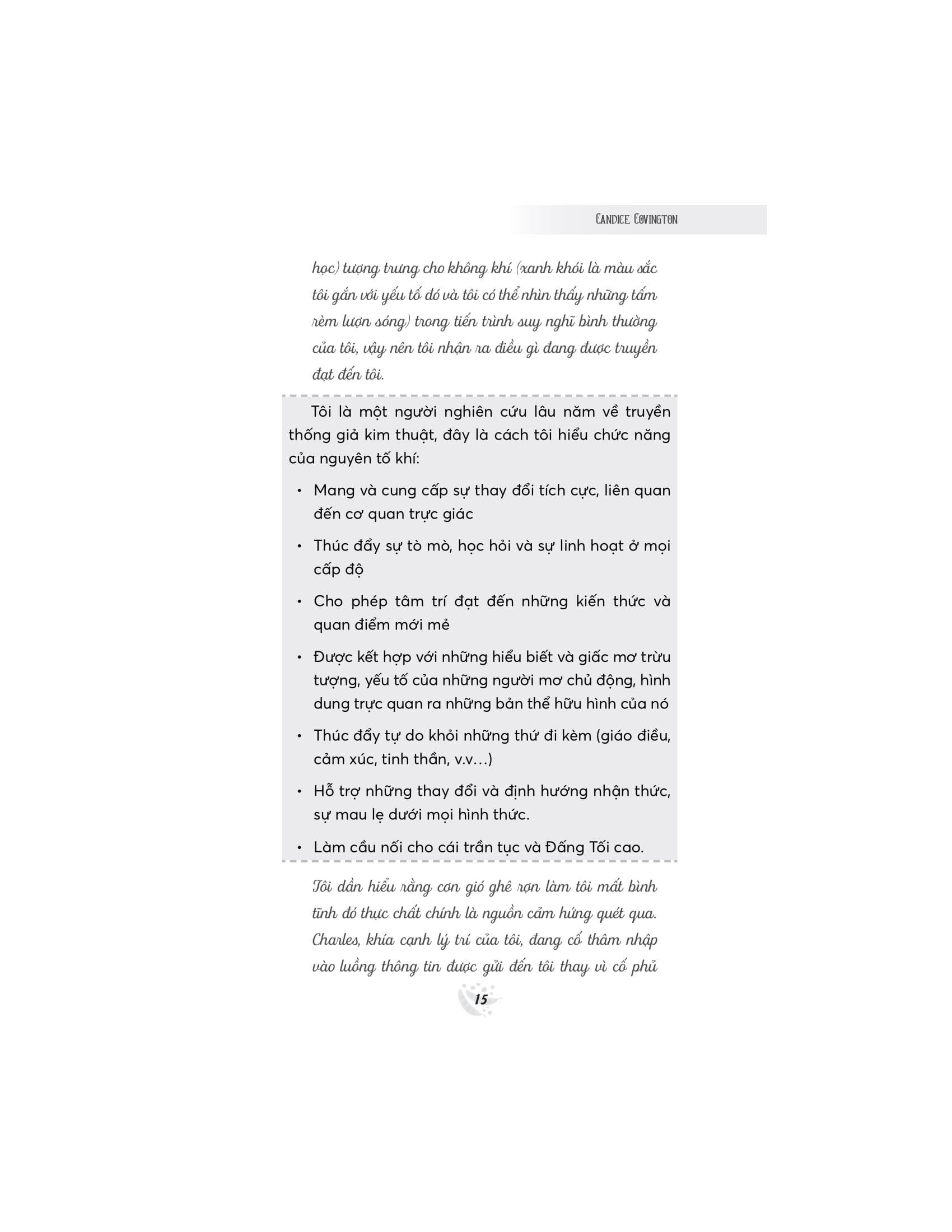 Candice Covington là nhà trị liệu mùi hương, nhà trị liệu mát-xa, bậc thầy nghệ thuật chữa lành được chứng nhận. Candice từng làm trợ giảng tại trường Cao đẳng Ashmead và là nhà trị liệu mùi hương ở Chopra Center, cô là người sáng lập Divine Archetypes, một công ty sản xuất tinh dầu thiên nhiên và chiết xuất hương hoa, đồng thời là tác giả của cuốn Essential Oils in Spiritual Practice.