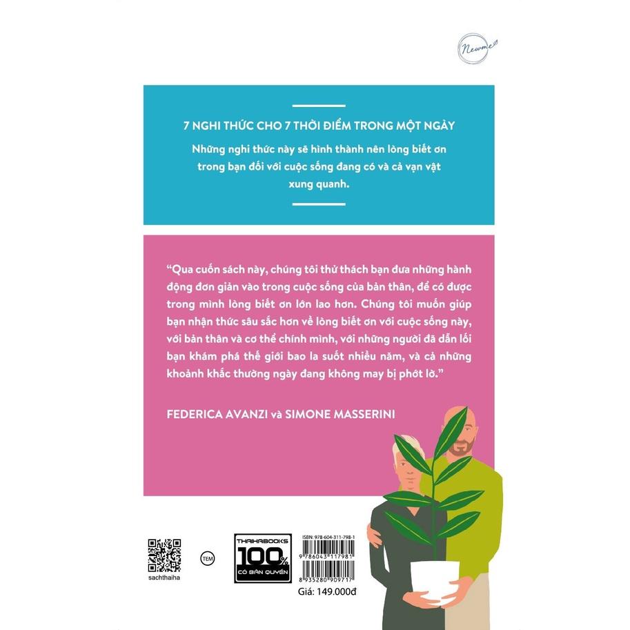 Cuốn sách sẽ dẫn dắt bạn theo ba khía cạnh quan trọng: CON SỐ BẢY, NGHI THỨC, và LÒNG BIẾT ƠN. Tác giả liệt kê ra 7 khoảnh khắc trong ngày và chọn ra bảy hành động cho mỗi khoảnh khắc với hy vọng rằng chúng sẽ trở thành thói quen thường nhật mới của bạn.