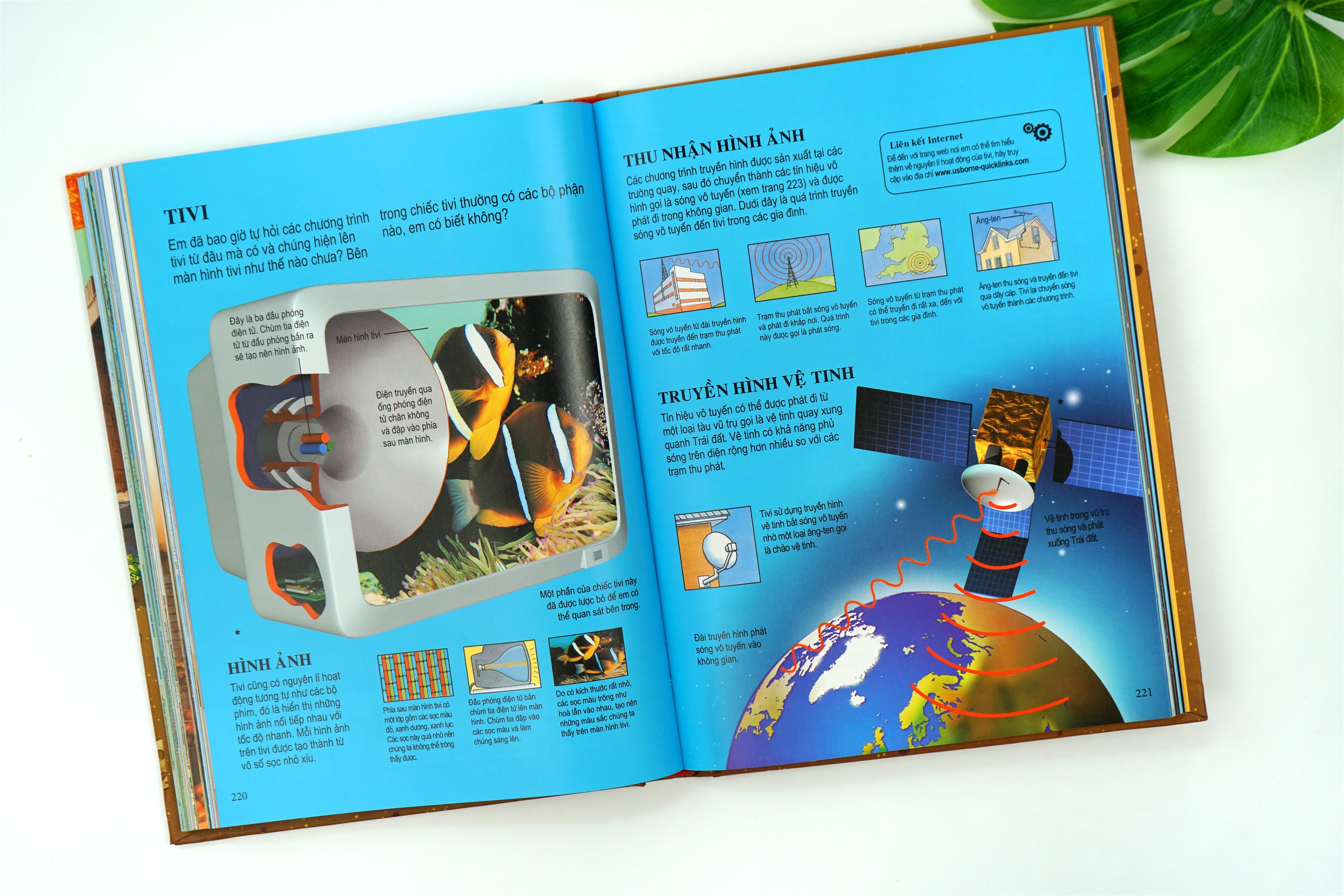 - Số trang: 320 trang LỢI ÍCH CỦA BỘ SÁCH: BÁCH KHOA TRI THỨC CHO TRẺ EM - CUỐN SÁCH CẦN CÓ TRONG MỌI GIA ĐÌNH Có thể nói, Bách khoa tri thức là dòng sách mà bạn có thể dễ dàng bắt gặp ở bất kỳ hiệu sách nào với đủ mọi lĩnh vực, chủ đề khác nhau, từ bách khoa tri thức về thế giới động vật, đến bách khoa tri thức về địa lý, khoa học hay cơ thể người… Nhưng sự đa dạng và dễ dàng tìm kiếm này cũng chính là nguyên nhân khiến bố mẹ hoang mang, bối rối. Giữa nhiều sách bách khoa như vậy, đâu mới là cuốn sách toàn diện, đầy đủ và phù hợp với trẻ nhất? “Bách khoa tri thức dành cho trẻ em” đến từ nhà xuất bản Usborne chính là cuốn sách mà bố mẹ đang cần. Bách khoa tri thức dành cho trẻ em là cuốn bách khoa truyền cảm hứng cho các độc giả nhỏ tuổi nghiên cứu, nghiền ngẫm. Kiến thức trong sách bao quát nhiều chủ đề, từ thế giới quanh ta, động vật, thực vật, cơ thể người, lịch sử cho đến khoa học, các loại máy móc và phương tiện, Mặc dù cung cấp lượng kiến thức khổng lồ thuộc nhiều lĩnh vực, nhưng cách sắp xếp kiến thức logic cùng hơn 1500 bức ảnh minh họa và sơ đồ nhiều màu sắc đã giúp cuốn sách trở nên dễ đọc, dễ hiểu ngay cả với những em bé chỉ 5 hay 6 tuổi. Bên cạnh đó, cuốn sách còn giúp bố mẹ và các bạn nhỏ có thể truy cập tức thì tới các video hay những kiến thức hay ho, thú vị thông qua hàng trăm liên kết Internet uy tín được đính kèm trong sách. Điều này không chỉ mở rộng biên độ trải nghiệm sách, mà còn cung cấp thêm thông tin hữu ích, khơi gợi ham muốn khám phá của độc giả. “Bách khoa tri thức dành cho trẻ em” chắc chắn là một cuốn sách hấp dẫn với các độc giả nhỏ tuổi, và là một cuốn sách cần có trong tủ sách của mọi gia đình.
