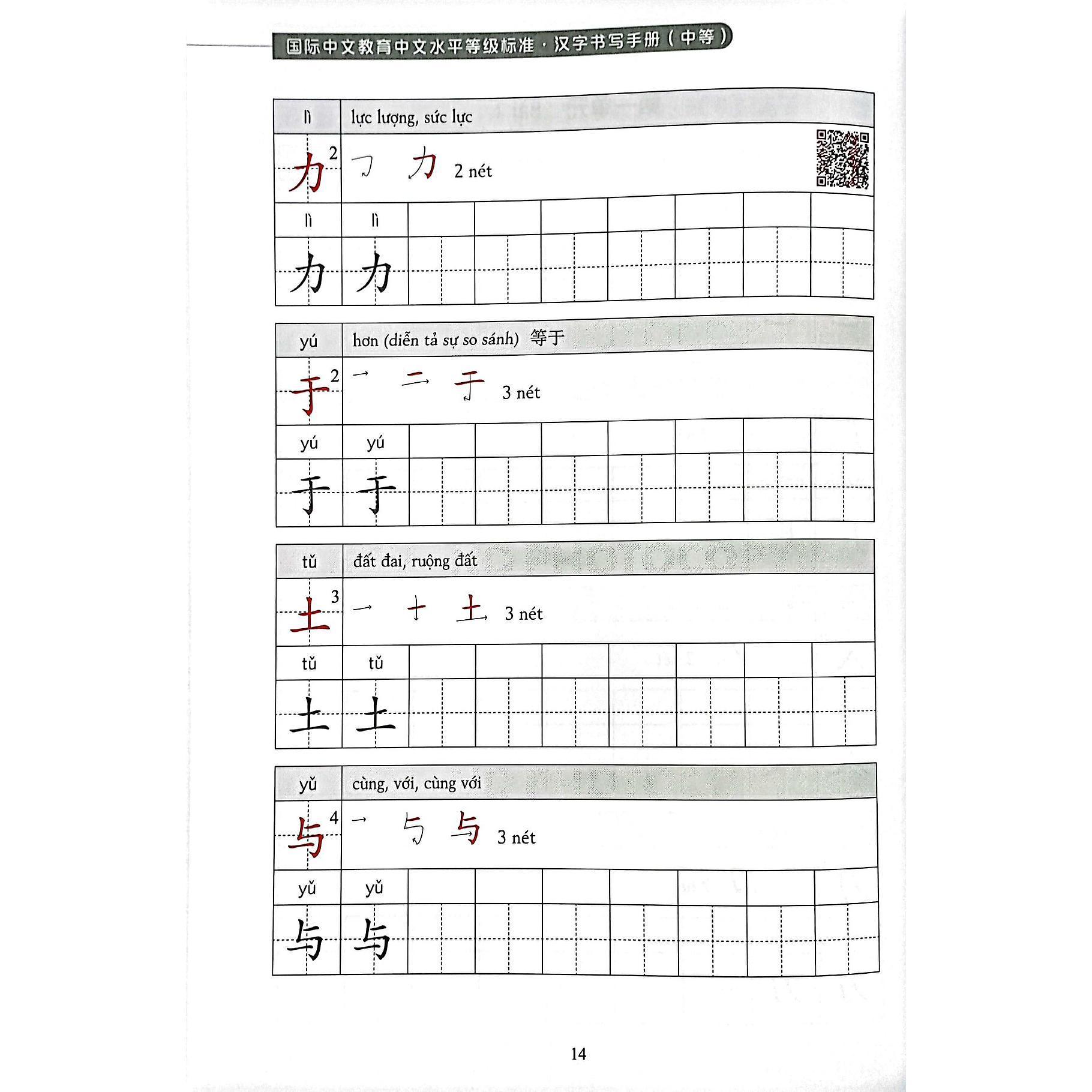 Mua tại TiktokTiêu Chuẩn Các Cấp Độ Tiếng Trung Trong Giáo Dục Tiếng Trung Quốc Tế - Giáo Trình Tập Viết Chữ Hán - Trung Cấp