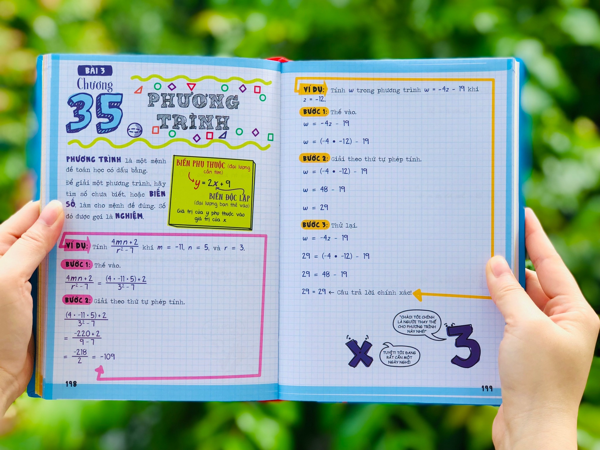 - Mỗi chương được thiết kế gồm 3 phần: Tổng quan tóm tắt các khái niệm, kiến thức trọng tâm >> Các ví dụ điển hình kèm hướng dẫn giải chi tiết >> Hệ thống bài tập từ cơ bản đến nâng cao dần để con tự thực hành và đánh giá.