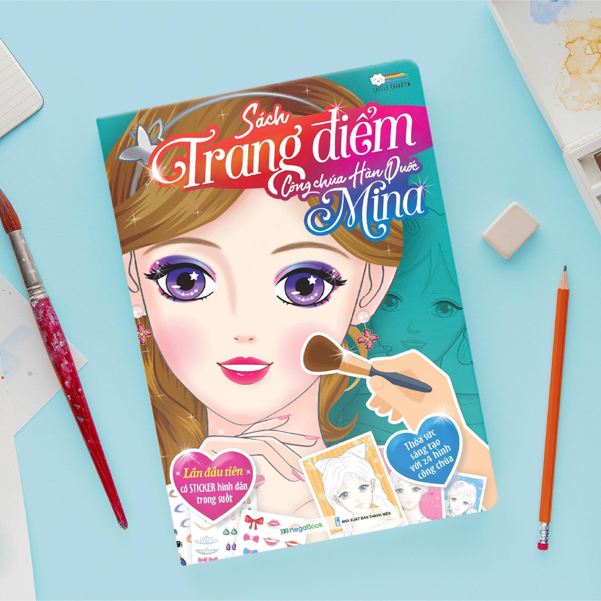 ✨Sách - Trang Điểm Công Chúa Hàn Quốc Mina - Tô Màu Và Bóc Dán Hơn 100+ Stickers Xinh Đẹp Cho Bé Gái - Megabook