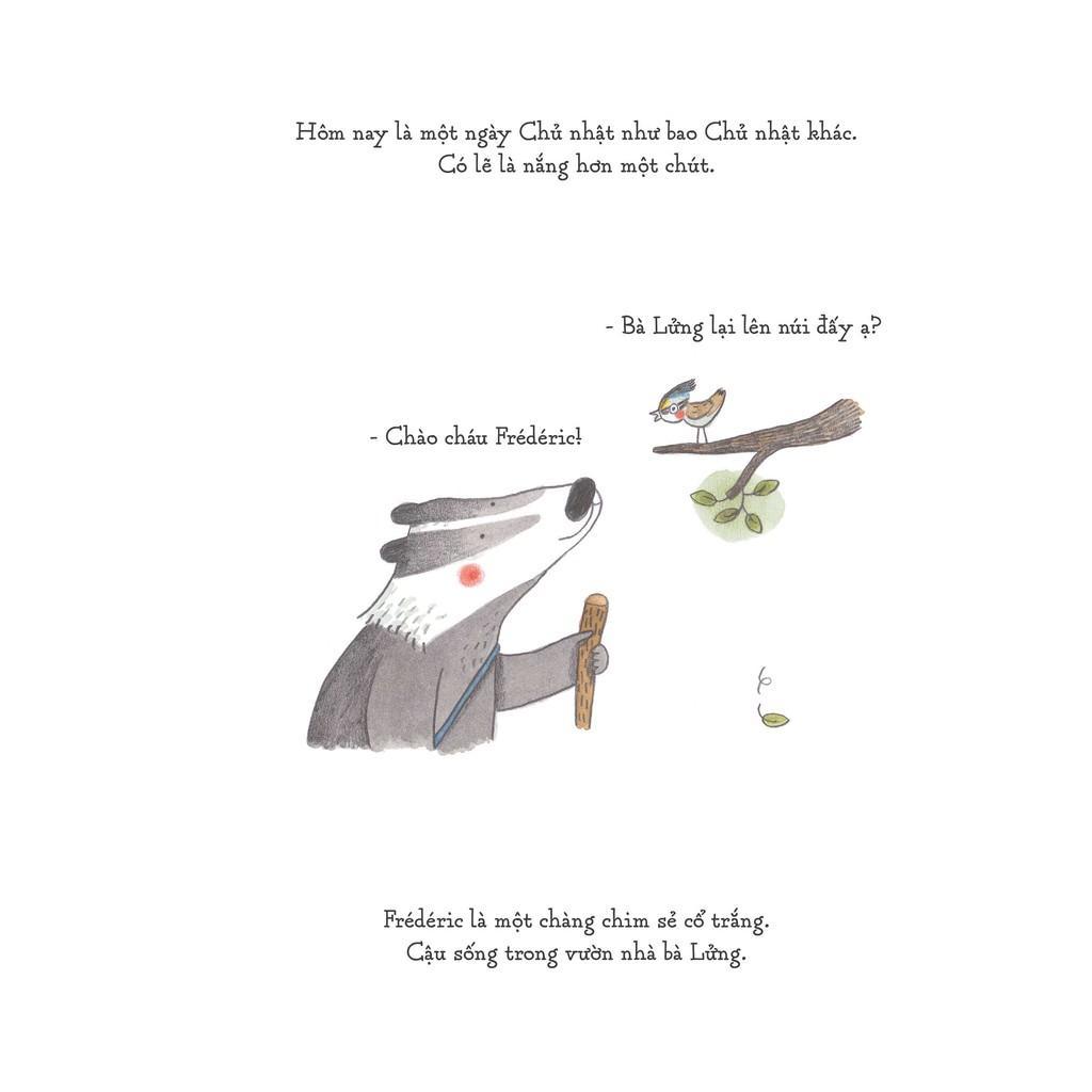 Mỗi Chủ nhật bà Lửng đều đi bộ lên đỉnh núi Bánh Đường. Trên đường đi, bà hái nấm, sưu tầm các báu vật và giúp đỡ bạn bè. Đôi khi bà còn tìm được cả bạn đồng hành nữa….Vào một ngày nọ, trong hành trình của mình bà Lửng đã dẫn dắt Lulu để trở thành một nhà leo núi mới. Bà Lửng đã dạy Lulu những kiến thức về thiên nhiên cây cỏ, biết giúp đỡ người khác, biết cách sử dụng trực giác và quan trọng nhất là biết tận hưởng vẻ đẹp của thiên nhiên.