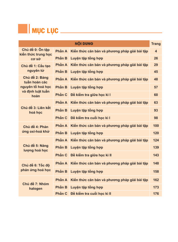 - Chủ đề 1: Cấu tạo nguyên tử - Chủ đề 2: Bảng tuần hoàn các nguyên tố hoá học - Chủ đề 3: Liên kết hoá học - Chủ đề 4: Phản ứng oxi