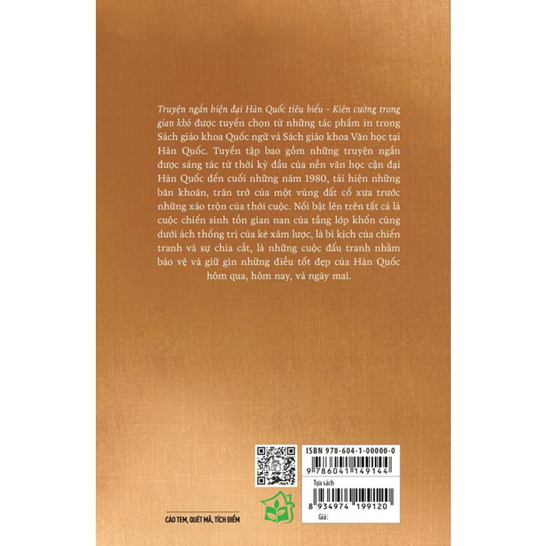 "Truyện ngắn hiện đại Hàn Quốc tiêu biểu - Kiên cường trong gian khó" được tuyển chọn từ những tác phẩm in trong Sách giáo khoa Quốc ngữ và Sách giáo khoa Văn học tại Hàn Quốc. Tuyển tập bao gồm những truyện ngắn được sáng tác từ thời kỳ đầu của nền văn học cận đại Hàn Quốc đến cuối những năm 1980, tái hiện những băn khoăn, trăn trở của một vùng đất cổ xưa trước những xáo trộn của thời cuộc. Nổi bật lên trên tất cả là cuộc chiến sinh tồn gian nan của tầng lớp khốn cùng dưới ách thống trị của kẻ xâm lược, là bi kịch của chiến tranh và sự chia cắt, là những cuộc đấu tranh nhằm bảo vệ và giữ gìn những điều tốt đẹp của Hàn Quốc hôm qua, hôm nay, và ngày mai.