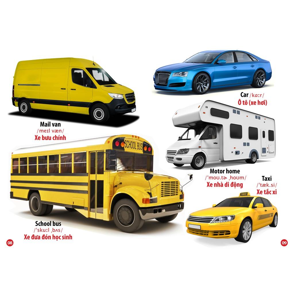 Những bức ảnh sặc sỡ cùng các khung hình sống động sẽ tái hiện lại cuộc sống Phương tiện giao thông, đồng thời giúp bé phát triển kĩ năng quan sát, xây dựng vốn từ vựng tiếng Anh phong phú về Phương tiện giao thông.