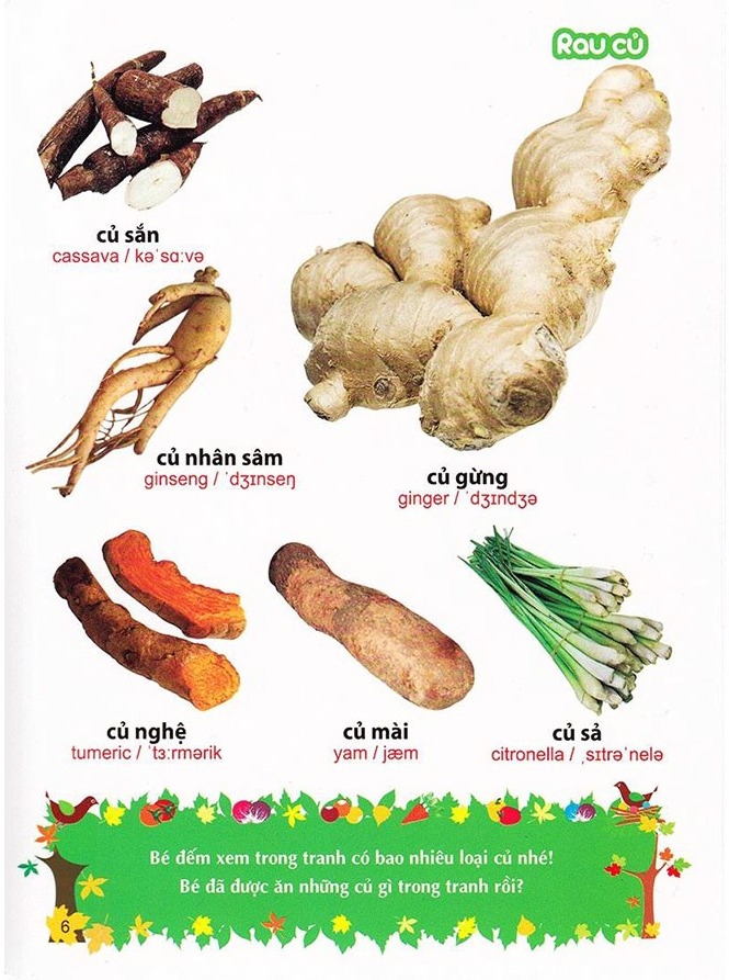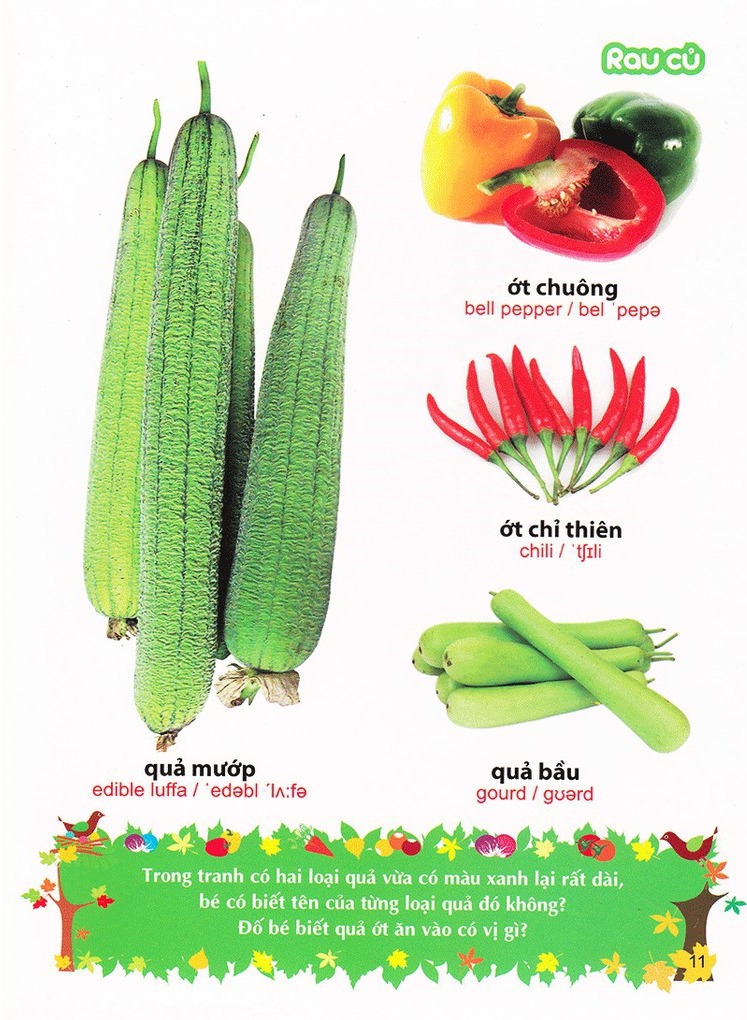 cuốn sách chính là bảo bối thần kì cùng con mở rộng các từ vựng tiếng anh về RAU- CỦ- QUẢ- HOA đó bố mẹ ạ!