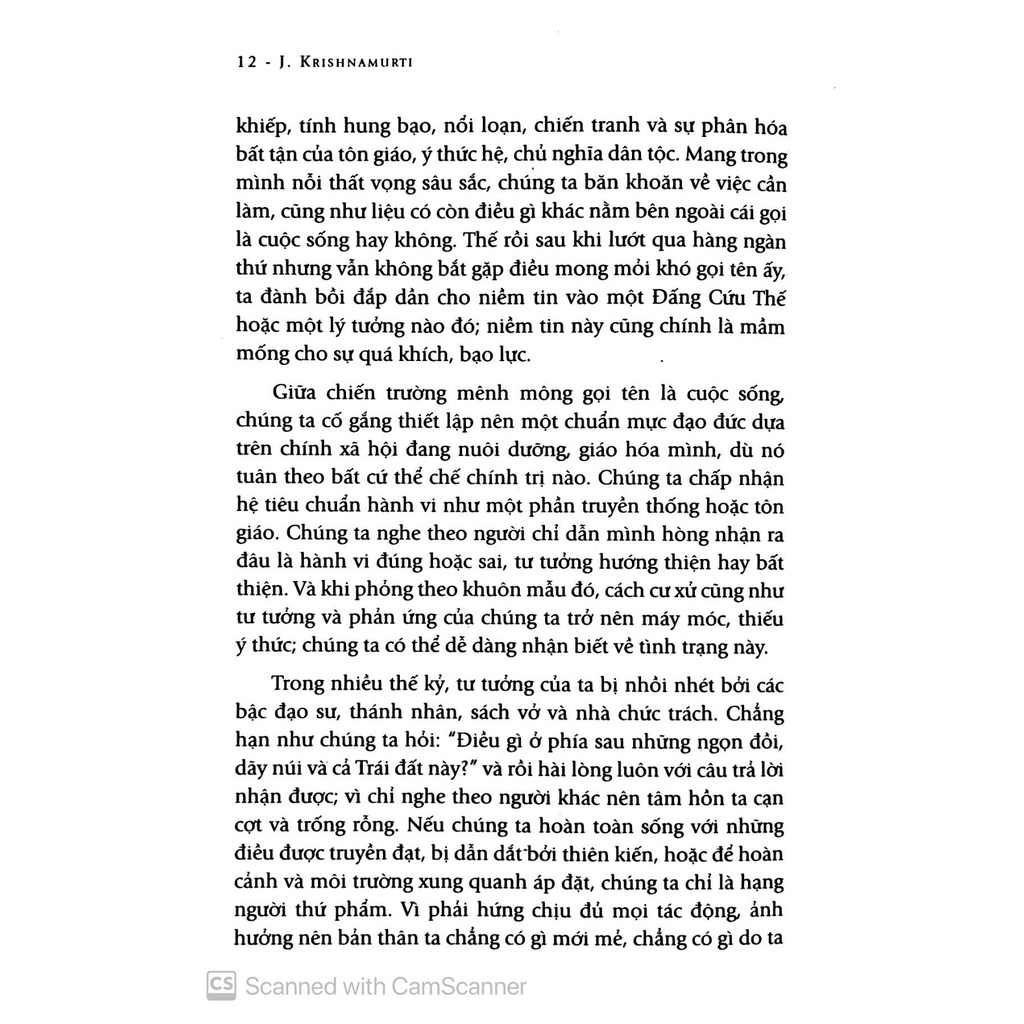 Nếu đọc cuốn sách này lần đầu, có lẽ bạn sẽ thắc mắc liệu một tài liệu bắt nguồn từ những năm 1960 có thể liên hệ chặt chẽ đến mức nào với thế giới hiện thời. Đã có biết bao trào lưu nổi dậy theo từng thời kỳ rồi bị dập tắt, hoặc do chính những người khởi lên xu hướng đó từ bỏ. Hiện tượng Krishnamurti có vì vậy mà trở nên lỗi thời? Krishnamurti đã phát biểu nhiều điều ứng nghiệm suốt chiều dài lịch sử loài người chứ không riêng gì thời đại này; chúng ta có đủ cơ sở để tin vào giá trị bền vững trong tư tưởng của ông. Thậm chí, có thể nói rằng quan điểm của ông ở thời đại ngày nay – những năm đầu thế kỷ 21 – còn trở nên xác đáng hơn bao giờ hết.