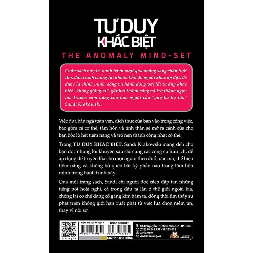 Trong Tư Duy Khác Biệt, Sandi Krakowski mang đến cho bạn đọc những lời khuyên sâu sắc cùng các công cụ hữu ích, dễ áp dụng để truyền lửa cho mọi người theo đuổi ước mơ, thể hiện tiềm năng và không bỏ quên bất kỳ phần nào trong tâm hồn mình trong hành trình này.