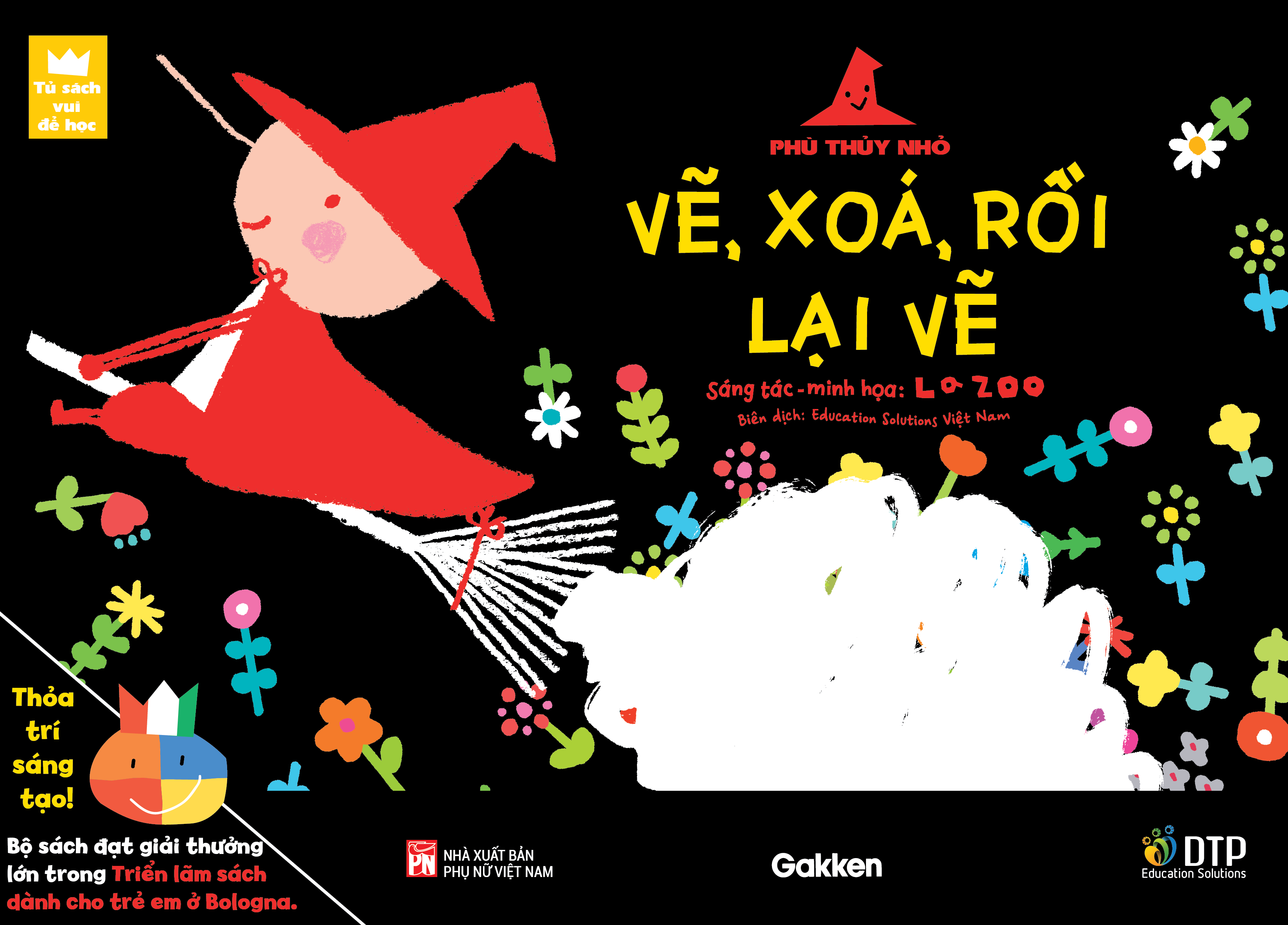 Tủ Sách Vui Để Học - Phù Thủy Nhỏ - Vẽ, Xóa, Rồi Lại Vẽ Vẽ, xóa, rồi lại vẽ: Phiên bản này được thiết kế để bé có thể vẽ đi vẽ lại nhiều lần! Nếu bạn thích thì cho dù có lộ ra ngoài hay chỉ thoa một chút cũng không sao. Miễn là bé thích thì dù có tô lem ra một chút, vẽ nguệch ngoạc một chút cũng không thành vấn đề! Cuốn sách tô màu này sẽ tạo sân chơi cho bé thoải mái vui chơi và phát triển cảm giác về màu sắc, trí tưởng tượng và khả năng sáng tạo của m.ình. Trọn bộ tuyển tập sách tô màu và cắt dán vui nhộn đến từ tác giả minh họa người Nhật nổi tiếng – LaZOO. Tuyển tập này đã đạt giải thưởng lớn trong Triển lãm sách dành cho trẻ em ở Bologna.