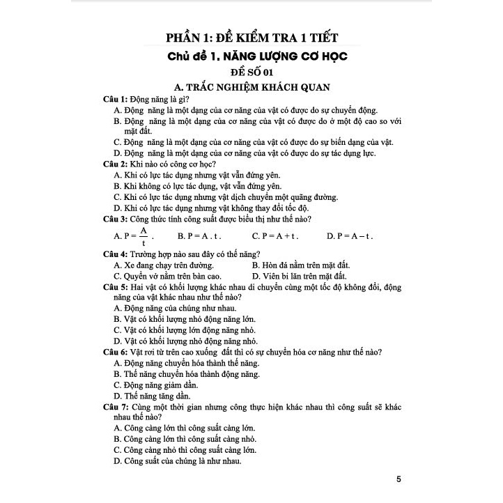 Phần thứ nhất: Đề kiểm tra 1 tiết (dùng để ôn tập và kiểm tra sau khi học xong một chủ đề).