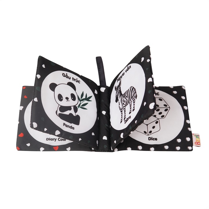 Sách vải đa giác quan Happi TỚ LÀ ĐỐM TRẮNG là sản phẩm đồ chơi Việt Nam, được thiết kế bằng bằng màu chủ đạo là ĐEN & TRẮNG thông qua các hình ảnh sinh động, ngôn từ đơn giản, giúp bé vừa phát triển vận động vừa phát triển trí não. Sách được thiết kế theo phương pháp tiếp nhận thông tin VAK (Visual, Auditory, Kinesthetic) kích thích trí thông minh tưởng tượng và ngôn ngữ cho trẻ ngay từ khi còn bé.
