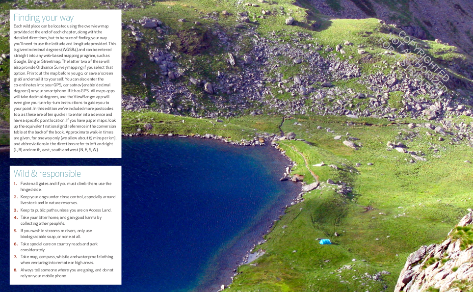 ---------------------------------------- A new compendium of adventures, from the best-selling Wild Guide series (winner of travel guidebook of the year 2015). This guide to Wales and the Welsh Marches, one of Europe's fastest growing adventure holiday destinations, explores the hidden parts of its better known tourist areas, as well many more remote regions, rarely visited by tourists. Guiding you to over 800 wild swims, ancient forests, lost ruins and hidden beaches. Including inns, wild camping, local crafts, artisan whisky distilleries and wild places to stay. Mesmerising photography - a beautiful giftable book. For the discerning explorer, adventurous family and those seeking the ultimate weekend escape. Packed with practical information including GPX co-ordinates and 25 maps