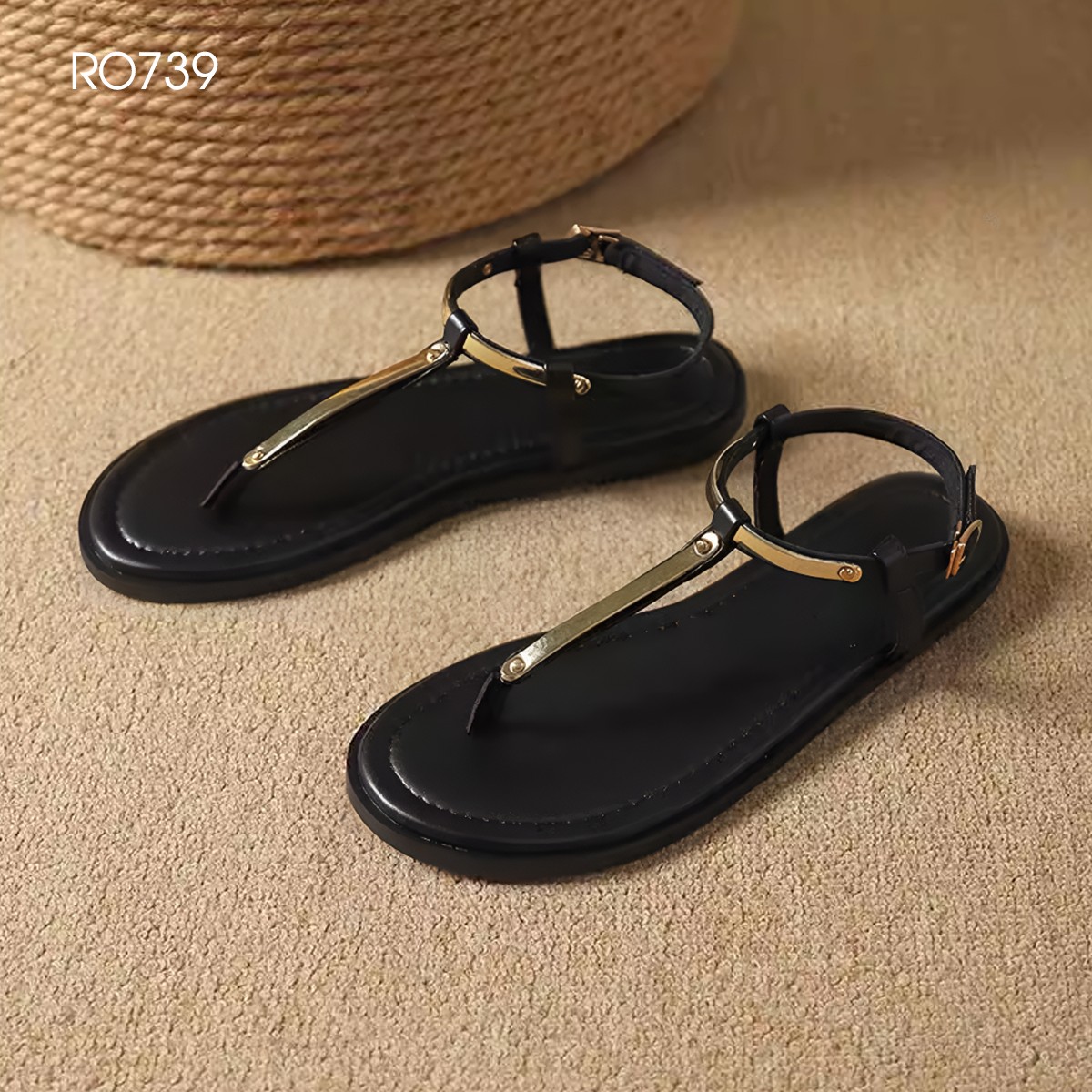 MÔ TẢ SẢN PHẨM: Sandal nữ quai xuôi, đế bệt ROSATA RO739 - 2p - Đen, Trắng - BKSTORE