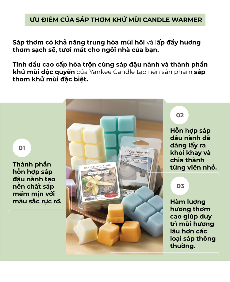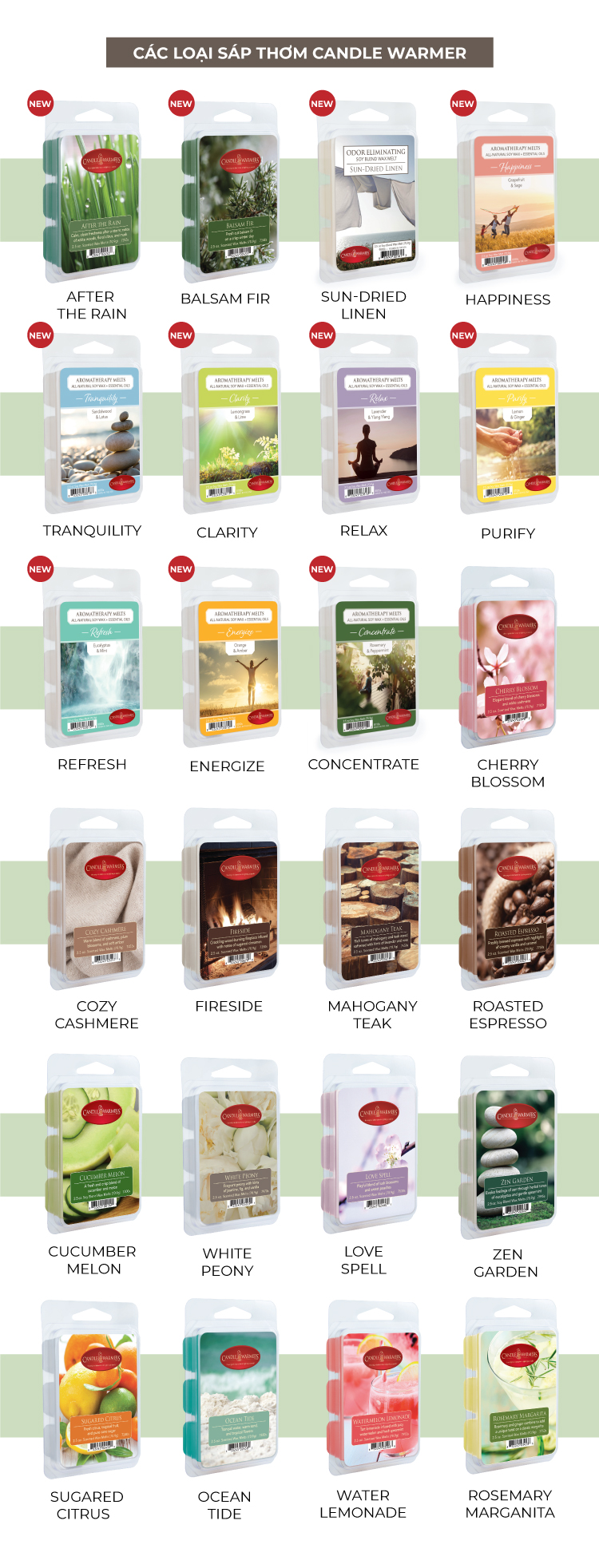 Hương thơm dịu nhẹ, thoáng mát, dễ chịuSáp thơm Aroma tạo hương thơm tự nhiên, nhẹ nhàng, mang đến cảm giác thoải mái, giúp nhanh chóng xóa tan mệt mỏi, đem lại cảm giác dễ chịu và