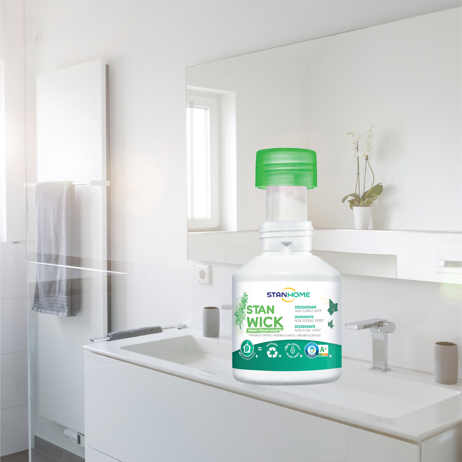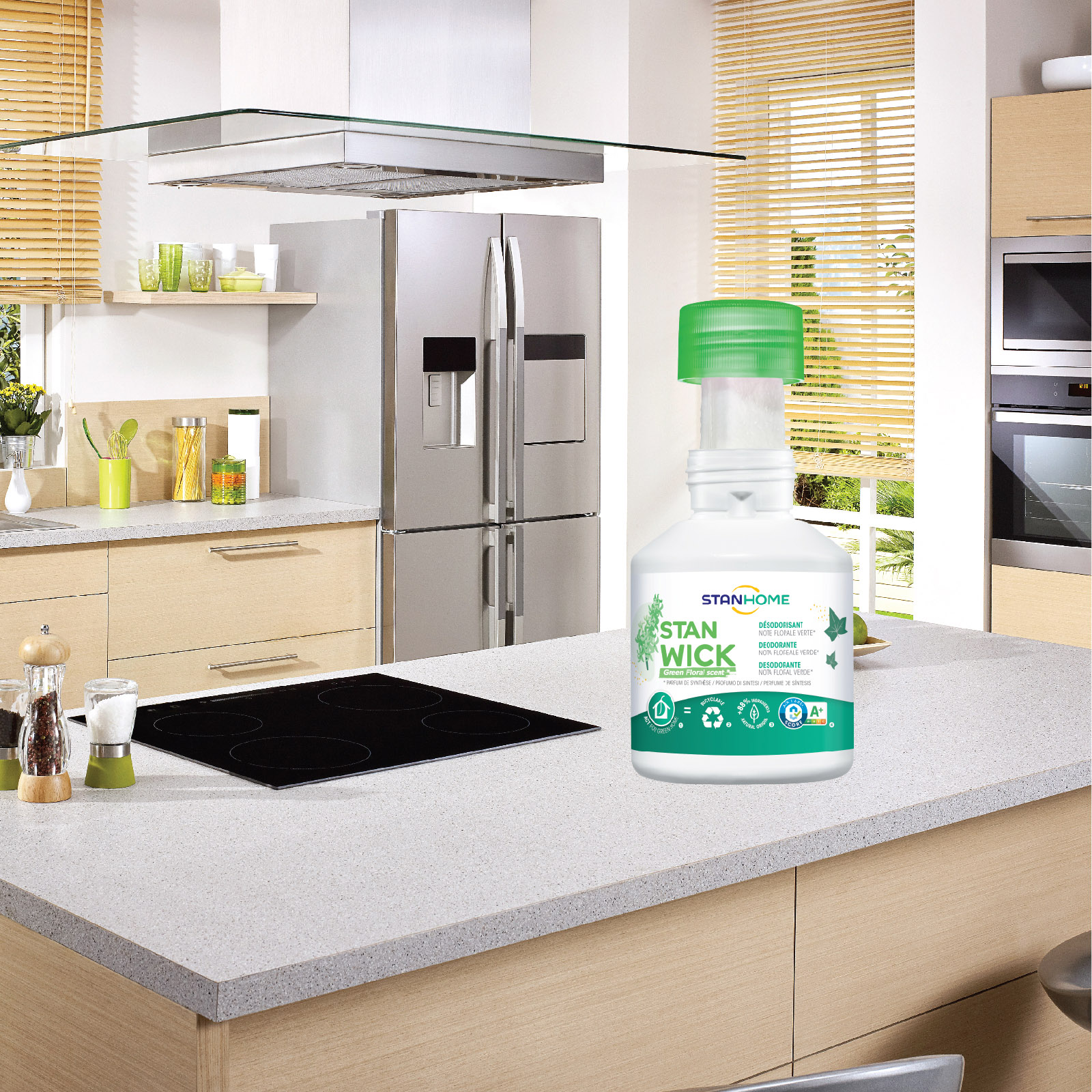 - Loại bỏ, hấp thụ và khử mùi khó chịu nhờ công nghệ khử mùi ưu việt được phát triển độc quyền của nhãn hàng Stanhome. STAN WICK GREEN FLORAL là sự kết hợp của những nốt hương tinh tế từ Dạ Lan Hương và hoa Nhài, thấm quyện hoàn hảo tạo nên tầng hương hoa cỏ mùa xuân thanh khiết, thơm mát trừ khử - loại bỏ triệt để mùi khó chịu dù là cứng đầu nhất cho không gian sống.
