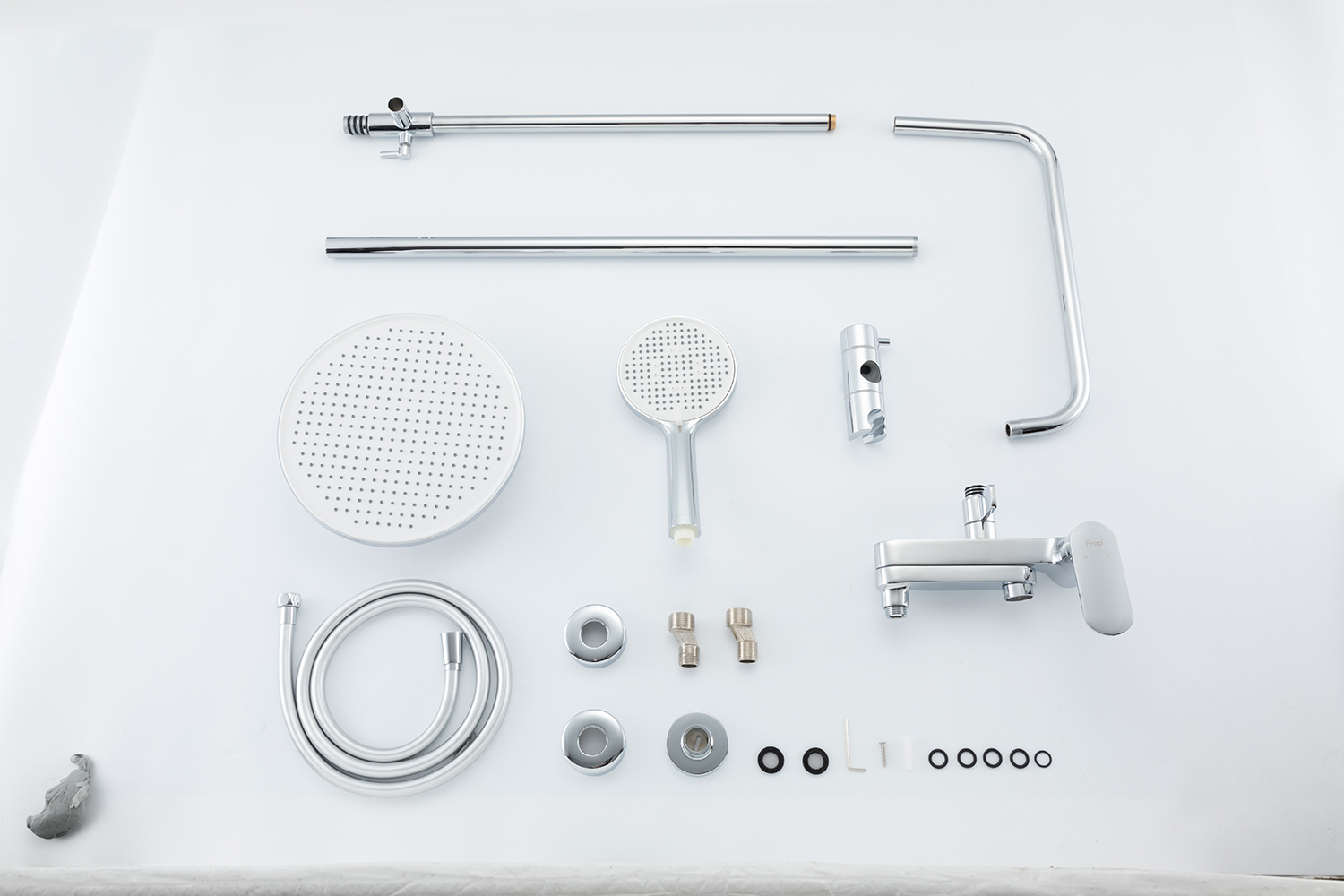Combo gồm: 01 thân vòi sen lạnh, 01 chụp chân sen, 01 thân vòi lavabo, 01 dây cấp nước, 01 tay sen, 01 dây sen, 01 gác tay sen + ốc vít và tắc kê